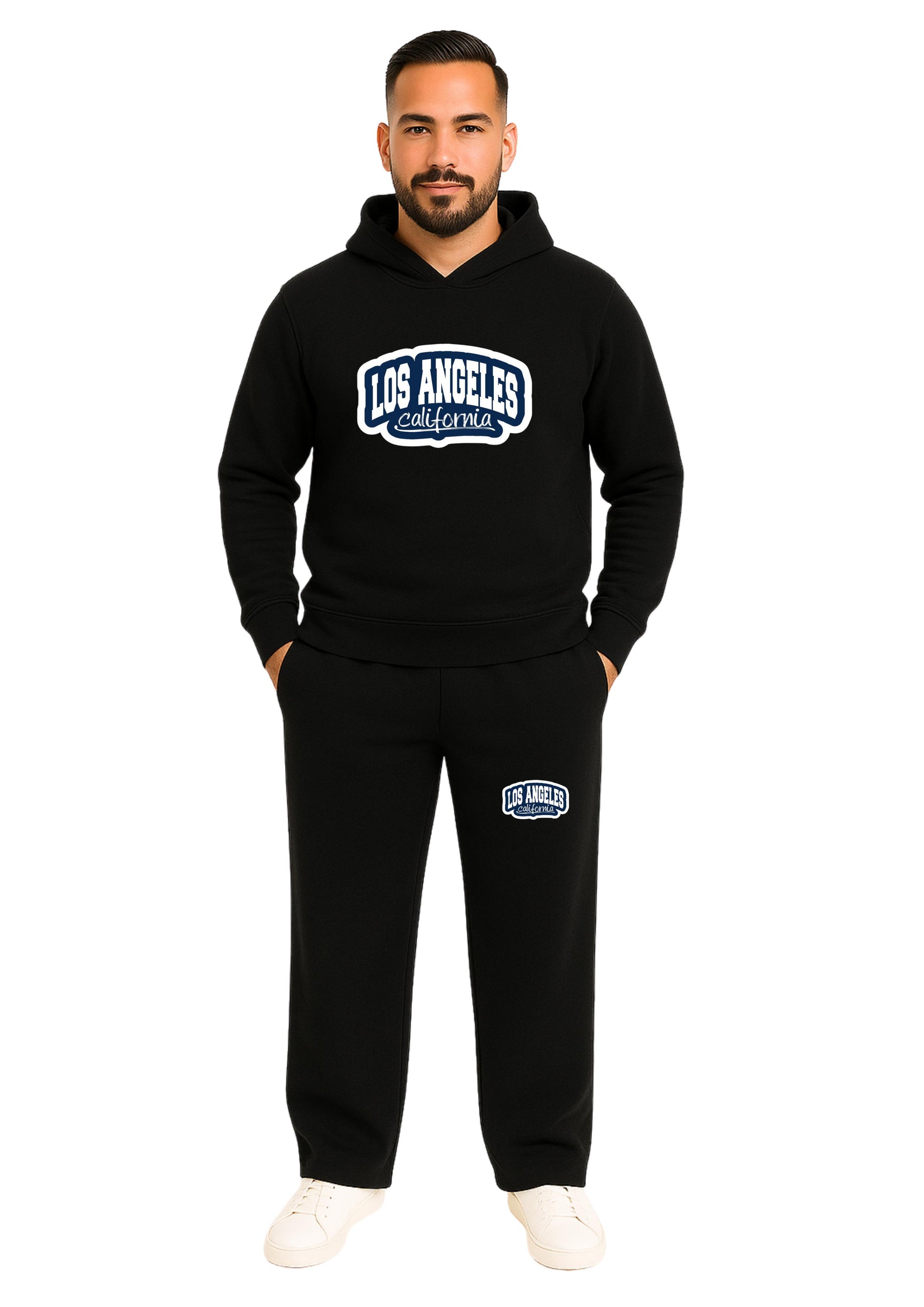 Erkek 2 İplik Kapşonlu Şardonlu Baggy Eşofman Takımı - Siyah