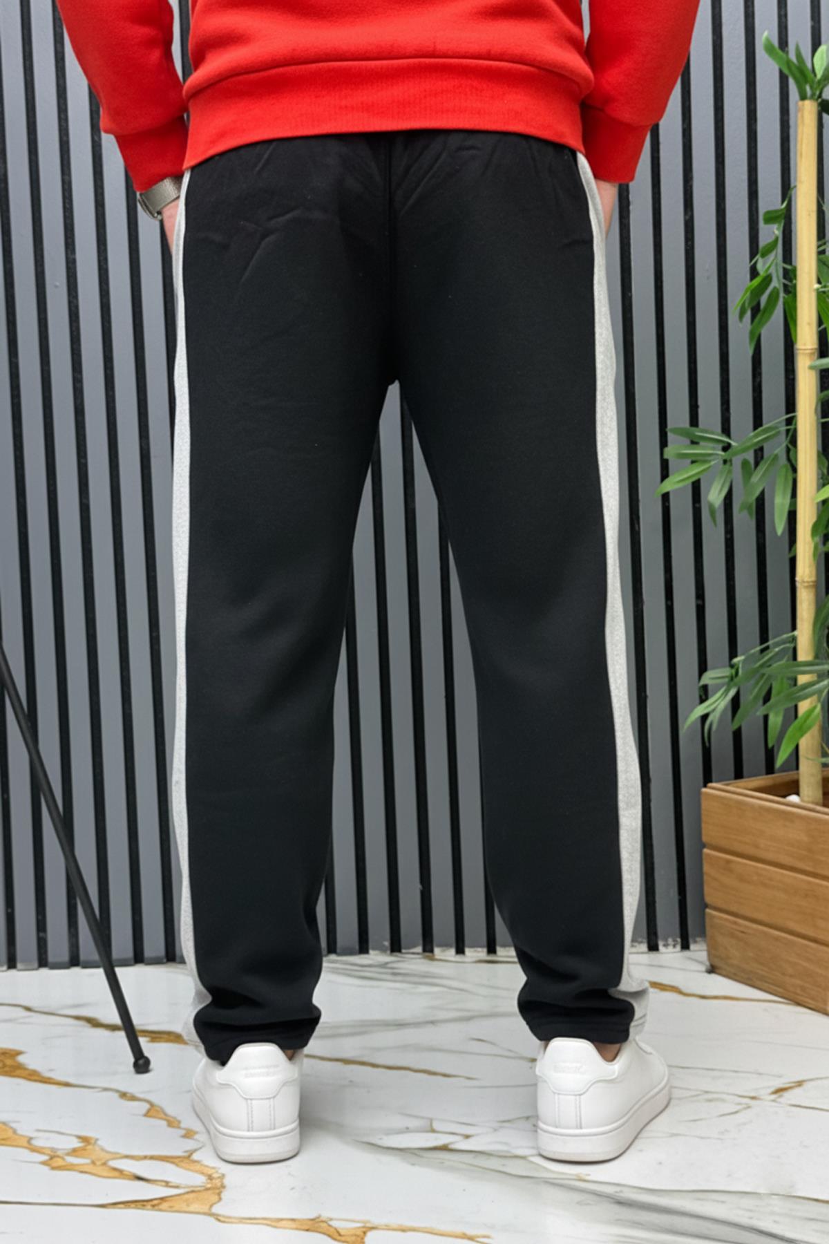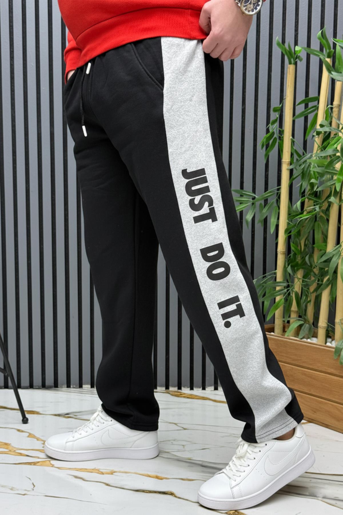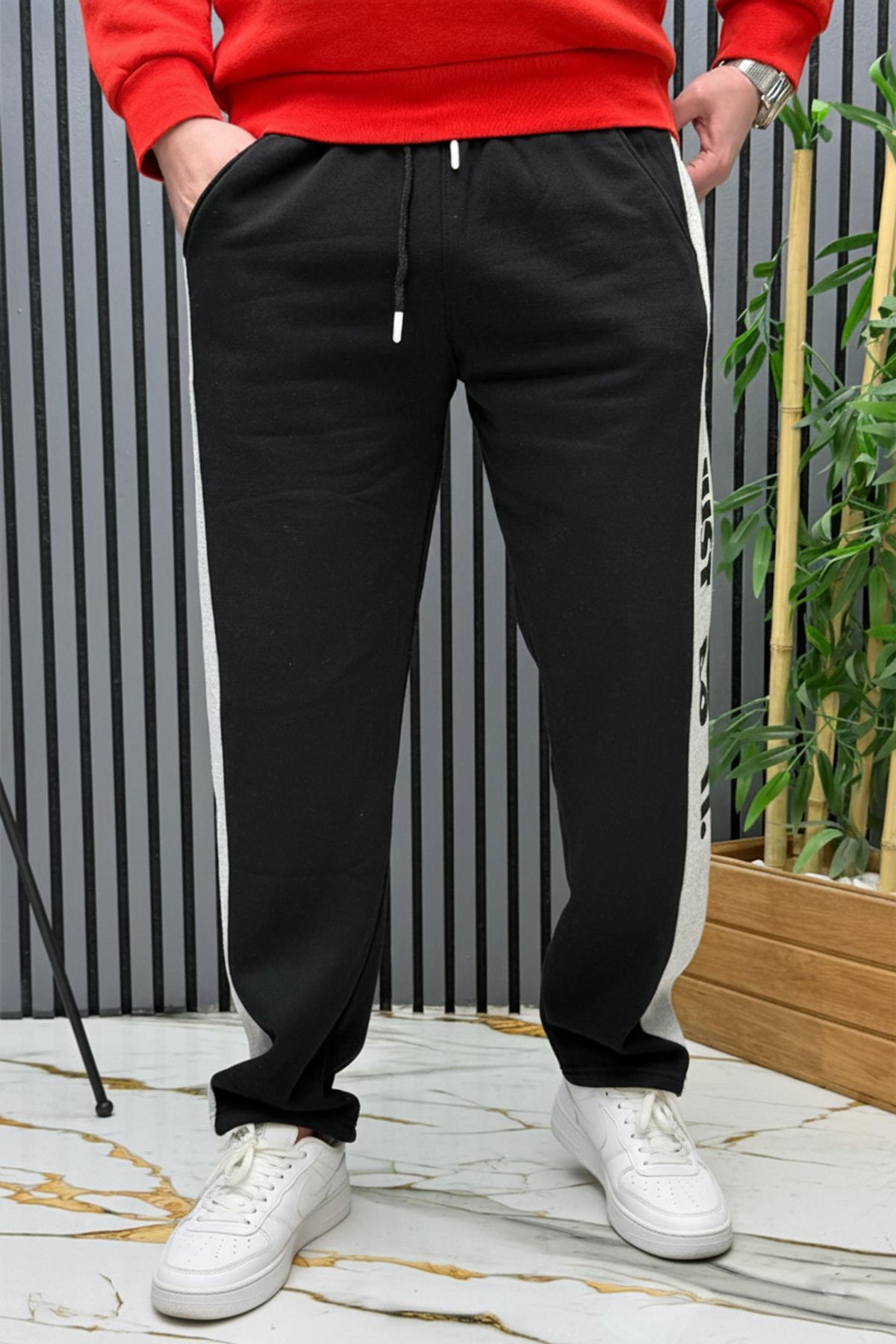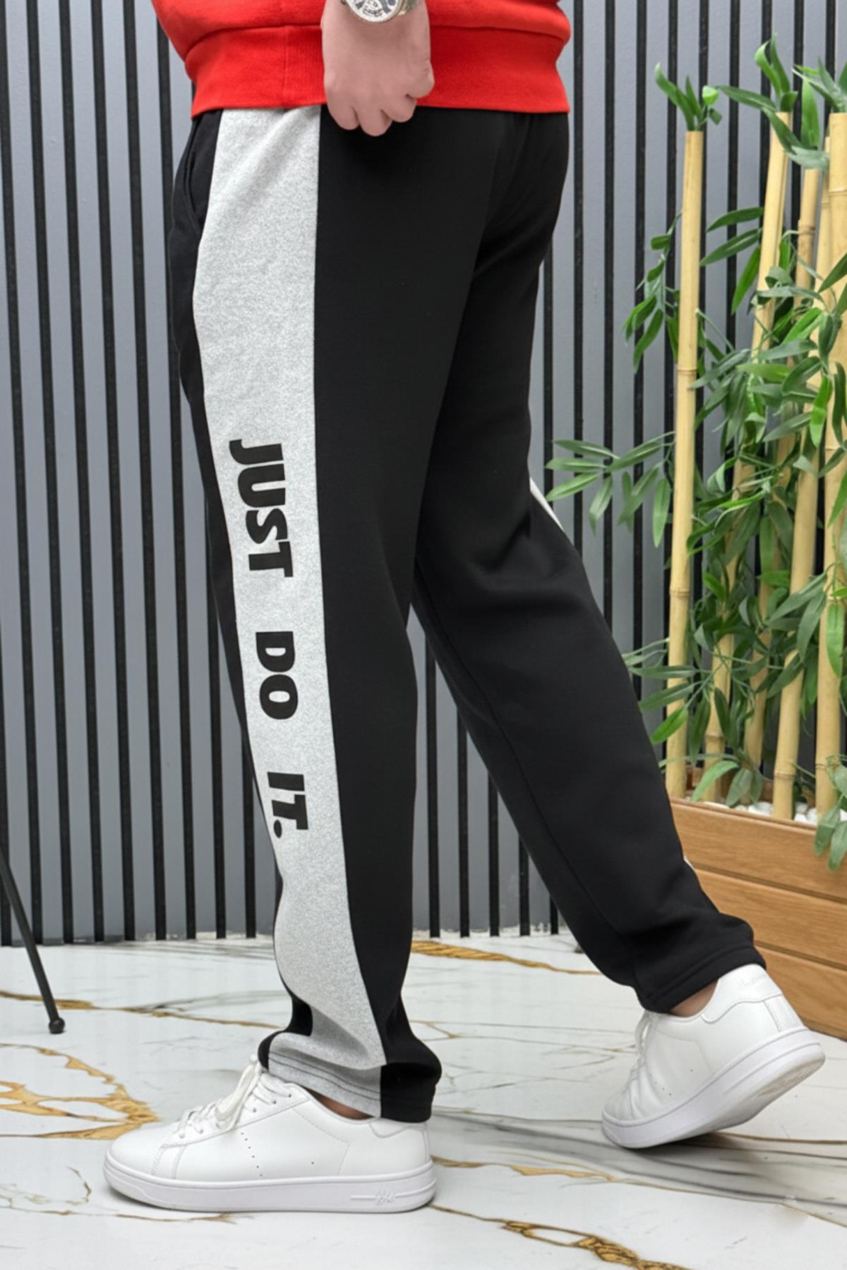 Erkek 2 İplik Şardonlu Just Baskılı Baggy Eşofman Altı - Siyah