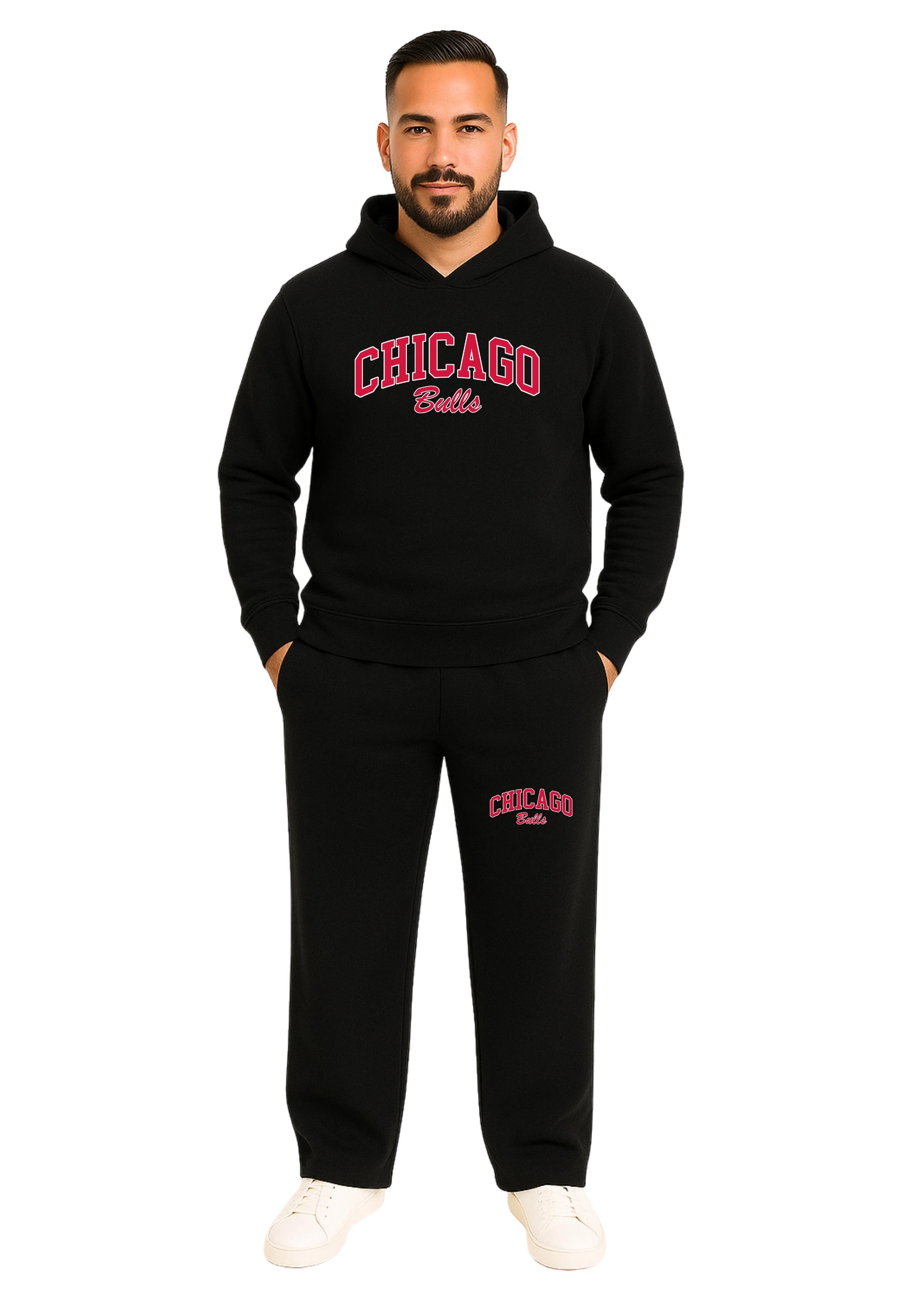 Erkek 2 İplik Şardonlu Kapşonlu Baggy Eşofman Takımı - Kırmızı