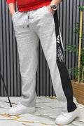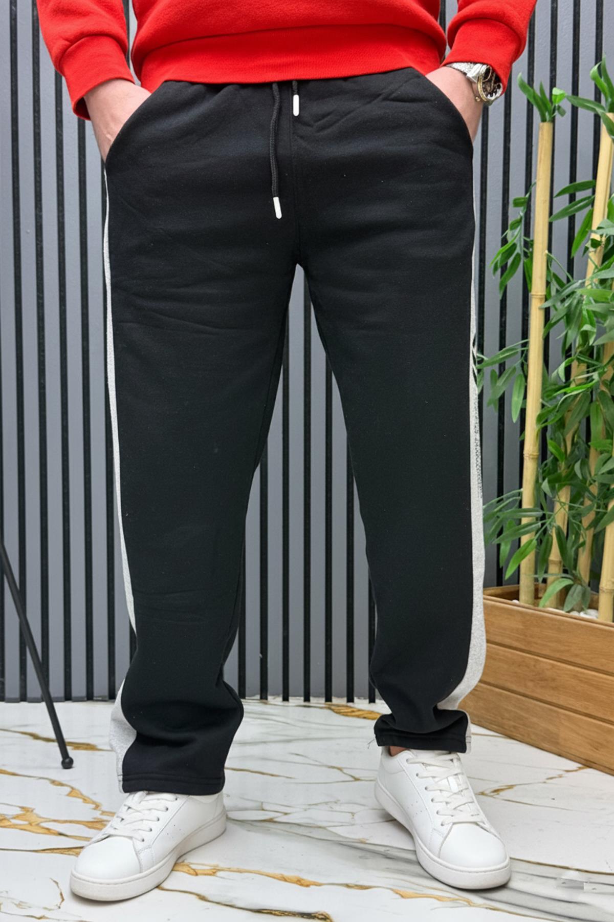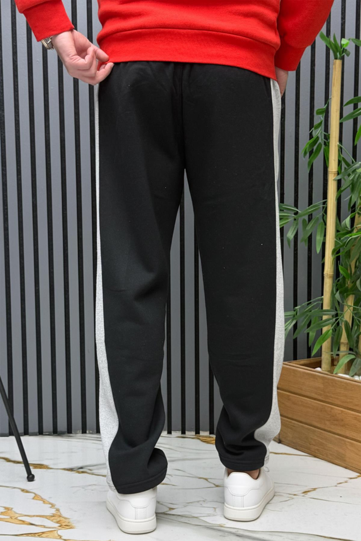 Erkek 2 İplik Şardonlu Wafra Baskılı Garnili Baggy Eşofman Altı - Siyah