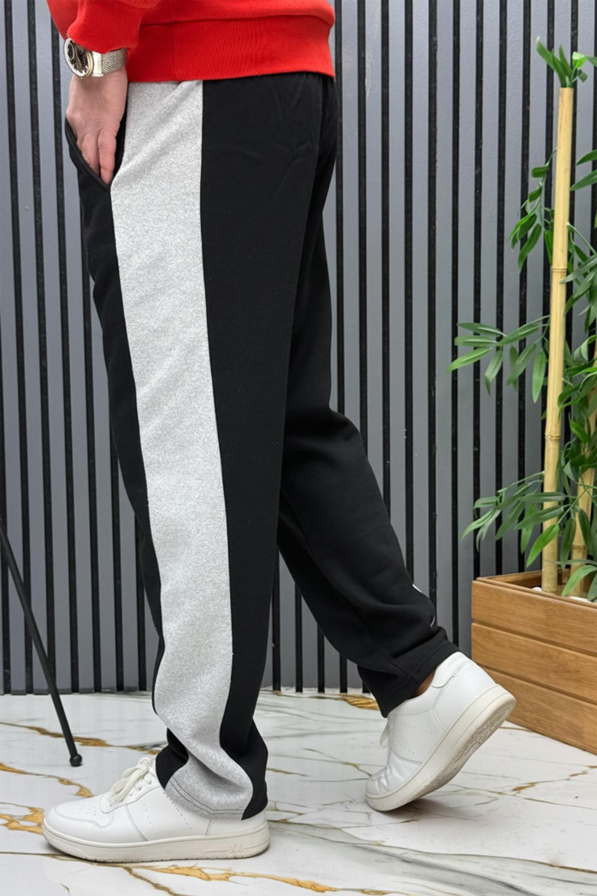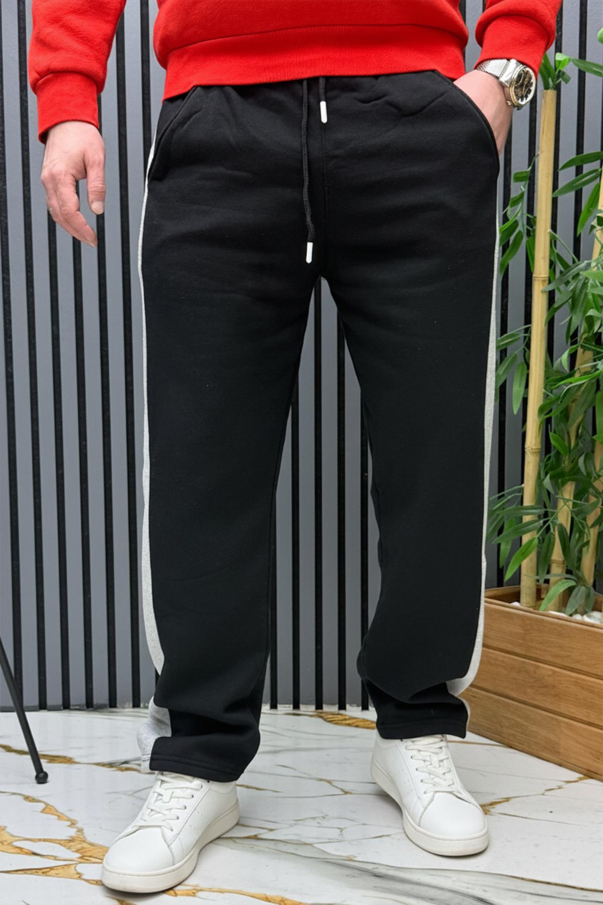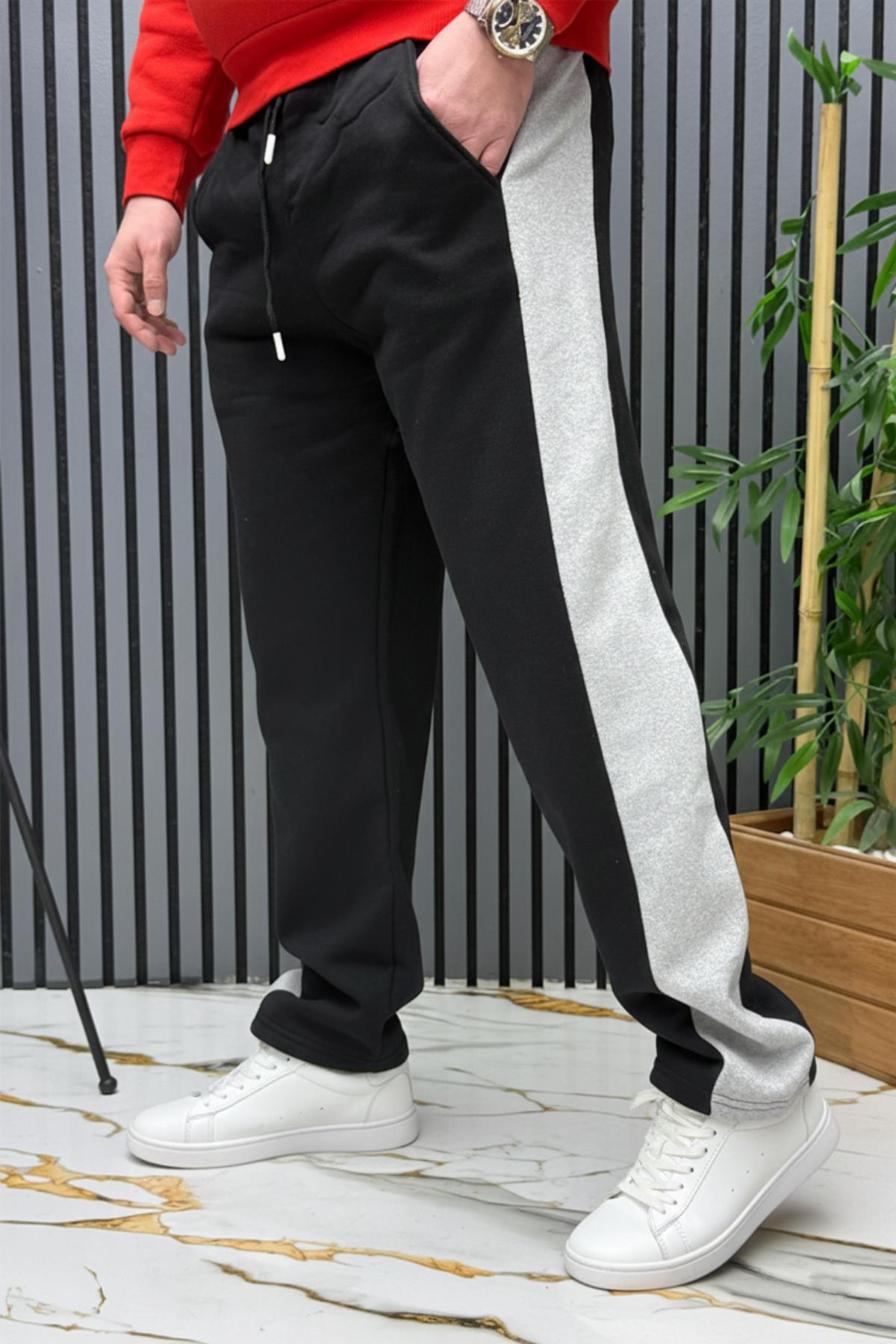 Erkek 2 İplik Şardonlu Yan Garnili Baggy Eşofman Altı - Siyah