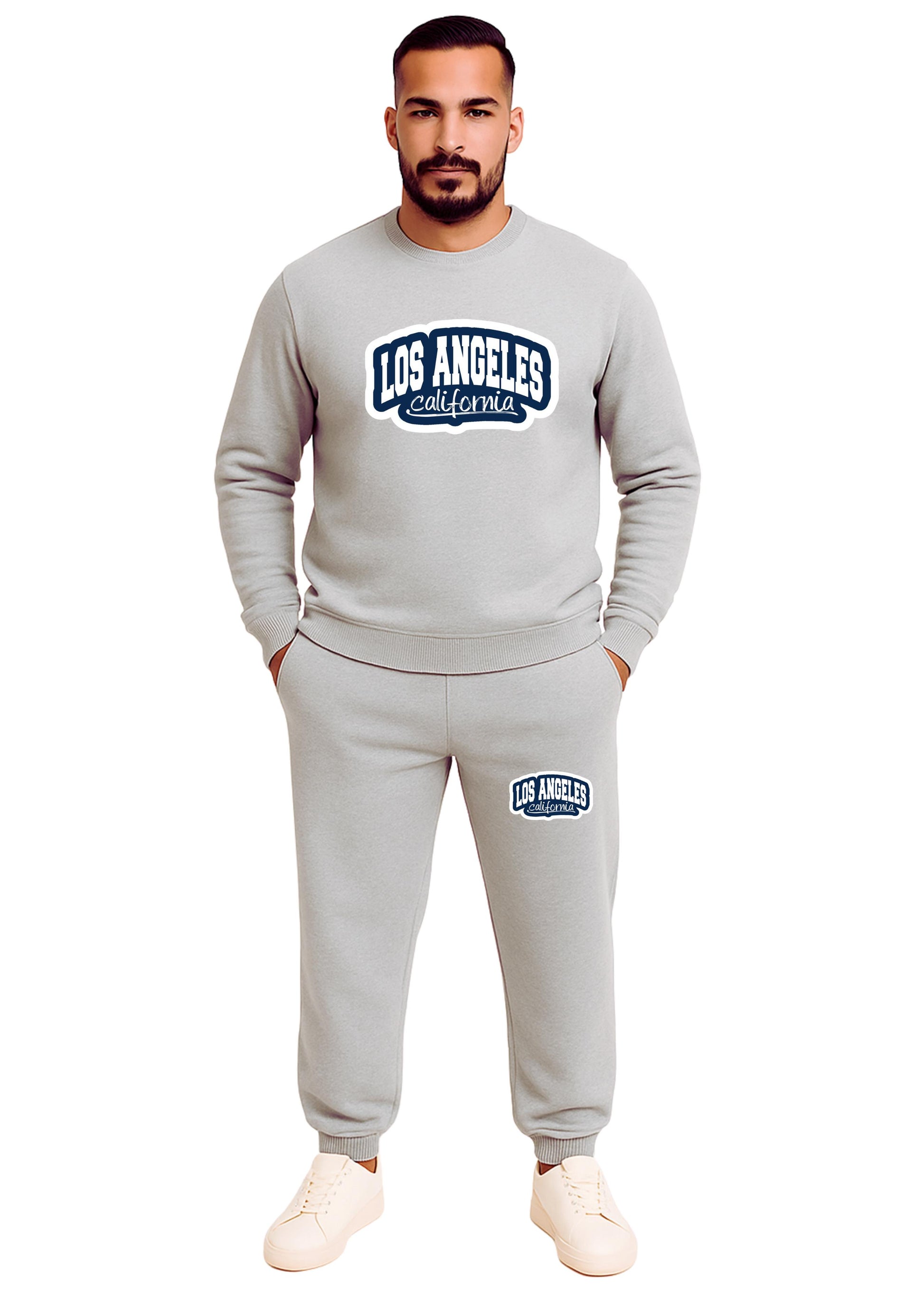 Erkek 2 İplik Sıfır Yaka Şardonlu Paça Lastikli Eşofman Takımı - Füme