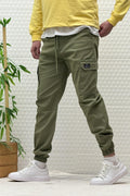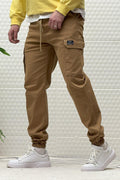 Erkek Beli Lastikli Likralı Kargo Cepli Gabardin Pantalon - Füme