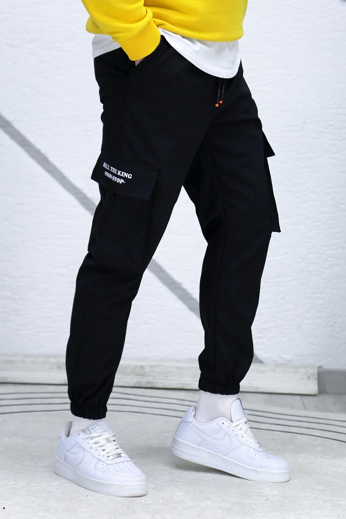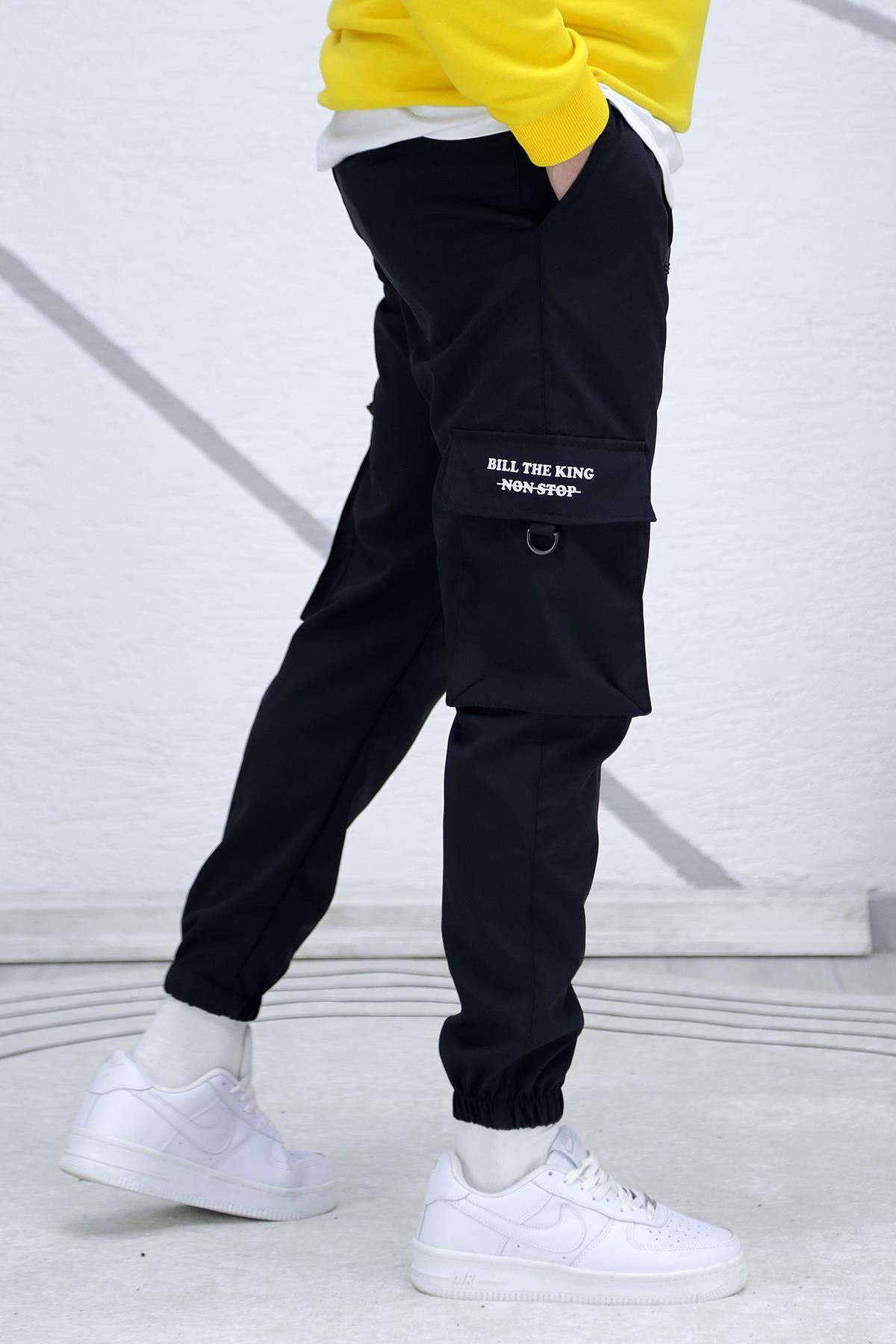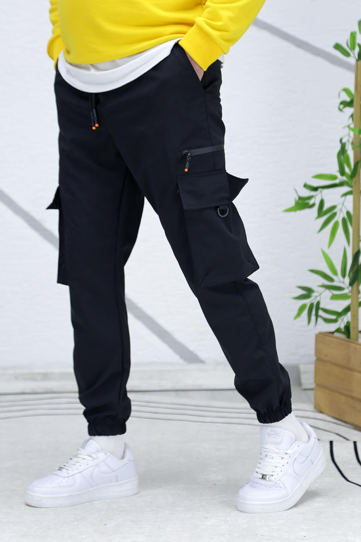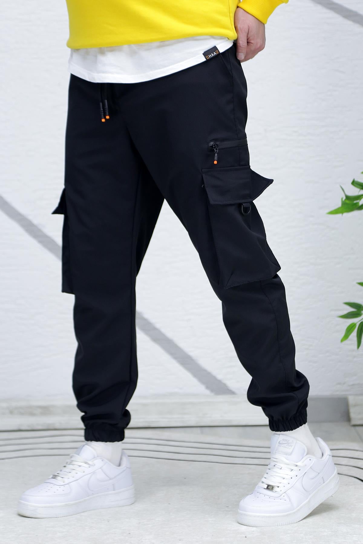 Erkek Fermuar Detaylı Paraşüt Kargo Pantolon (DAR KESİM) - Siyah