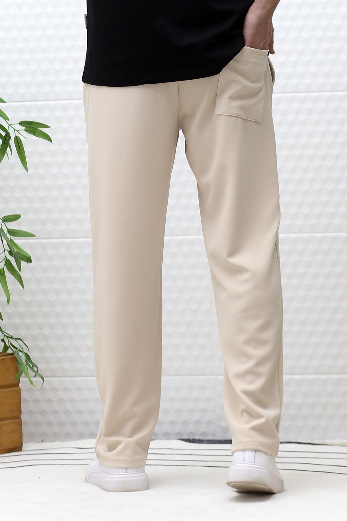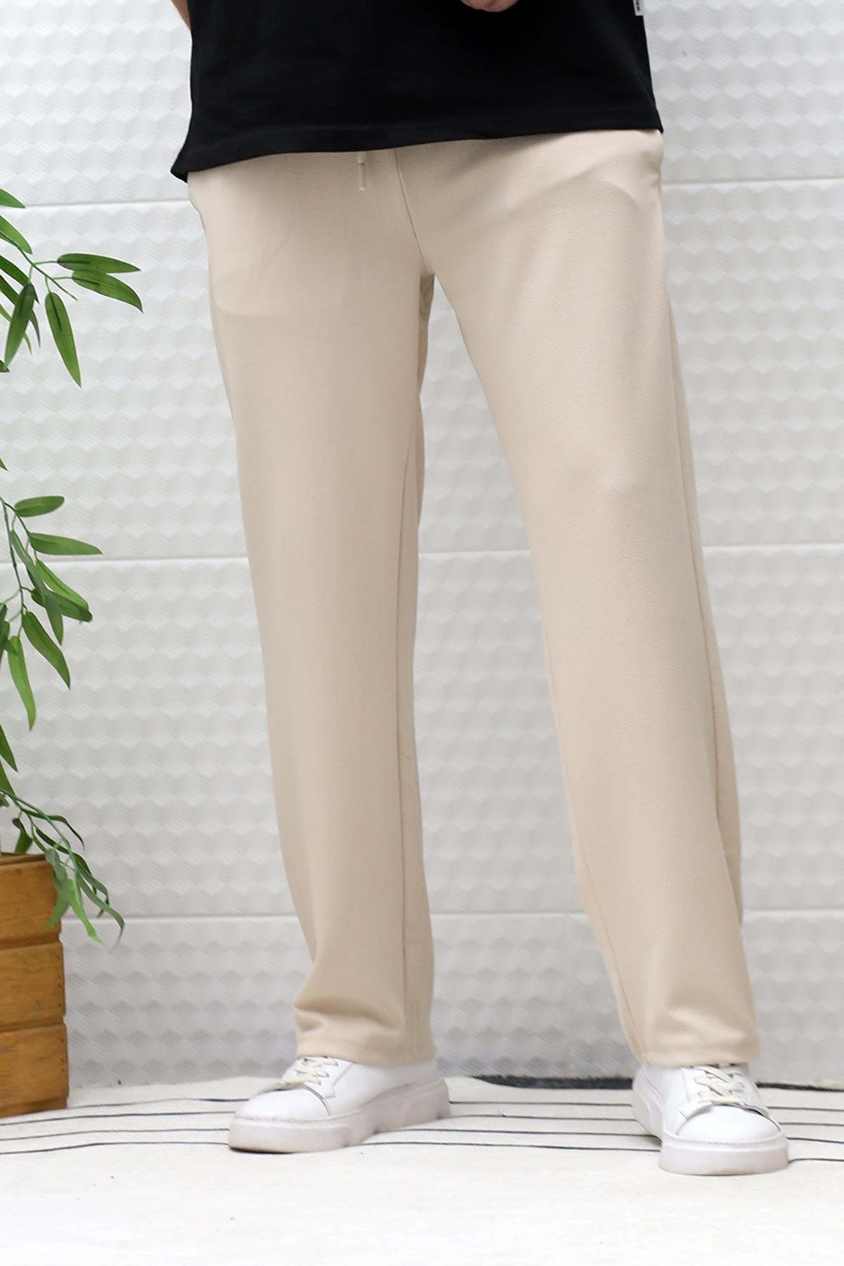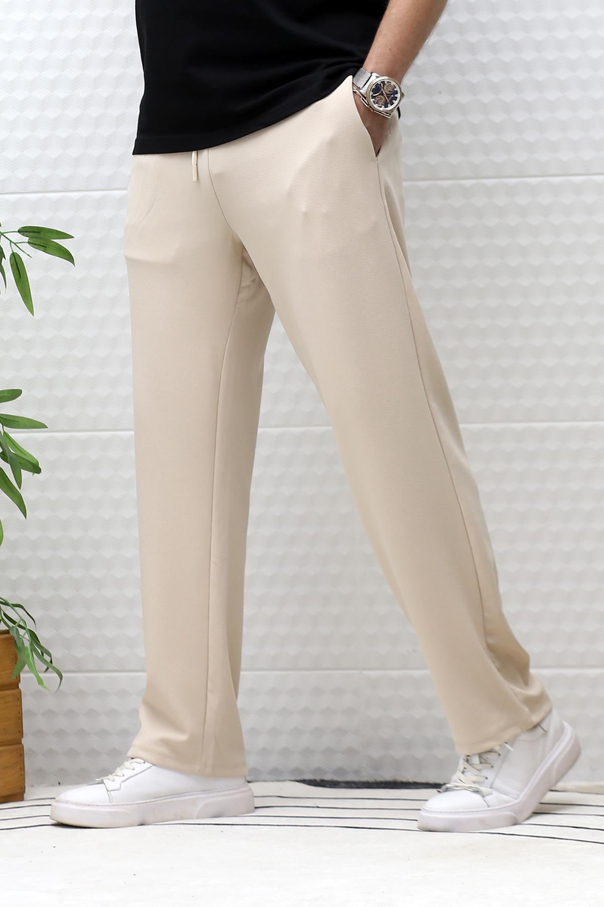 Erkek Full Likralı Rahat Kesim Baggy Pantolon Bel Lastikli - Bej