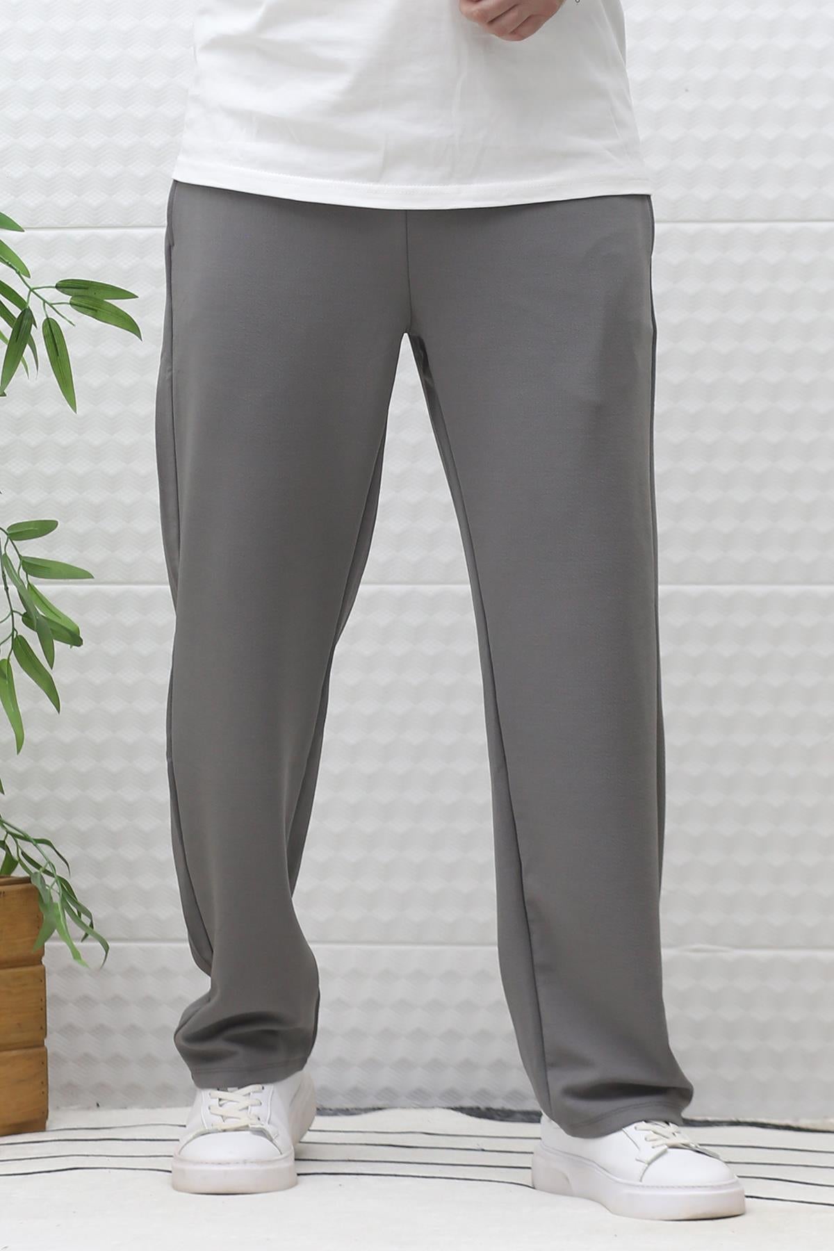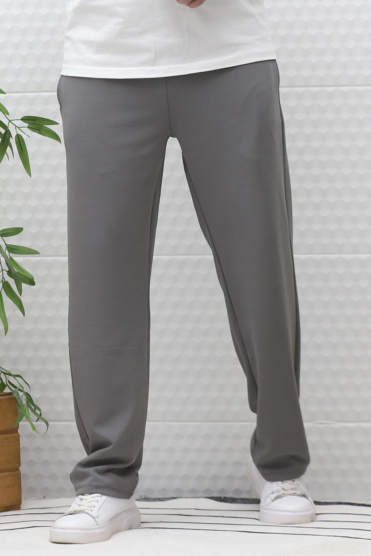 Erkek Full Likralı Rahat Kesim Baggy Pantolon Bel Lastikli - Gri