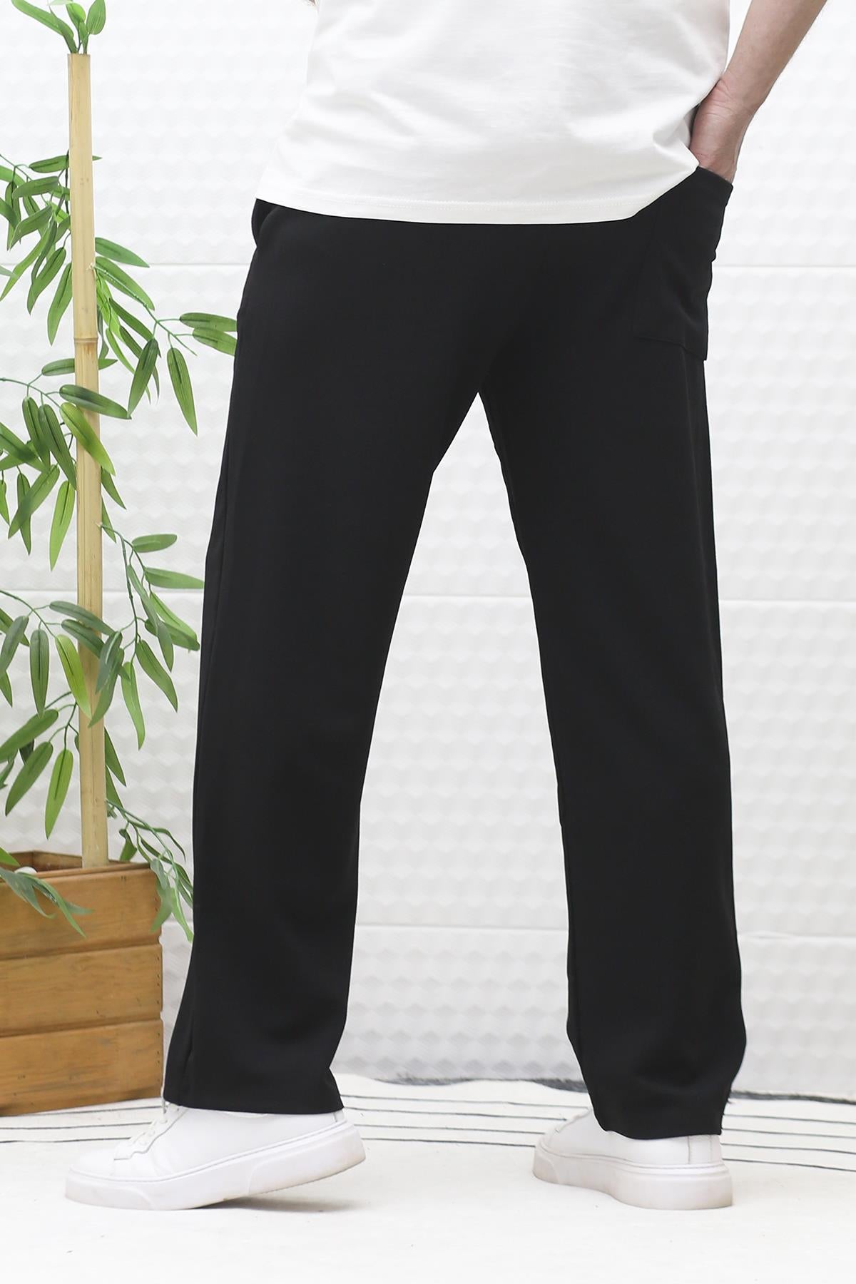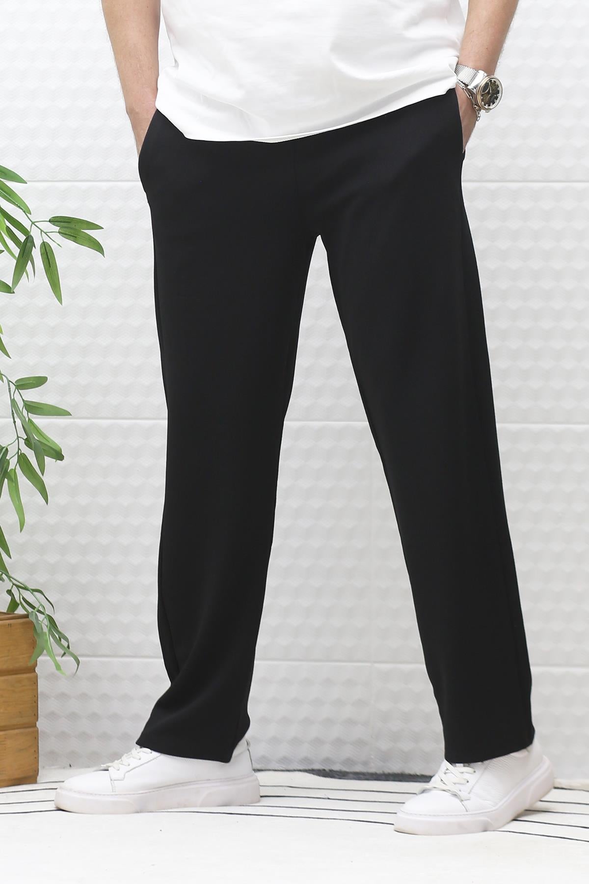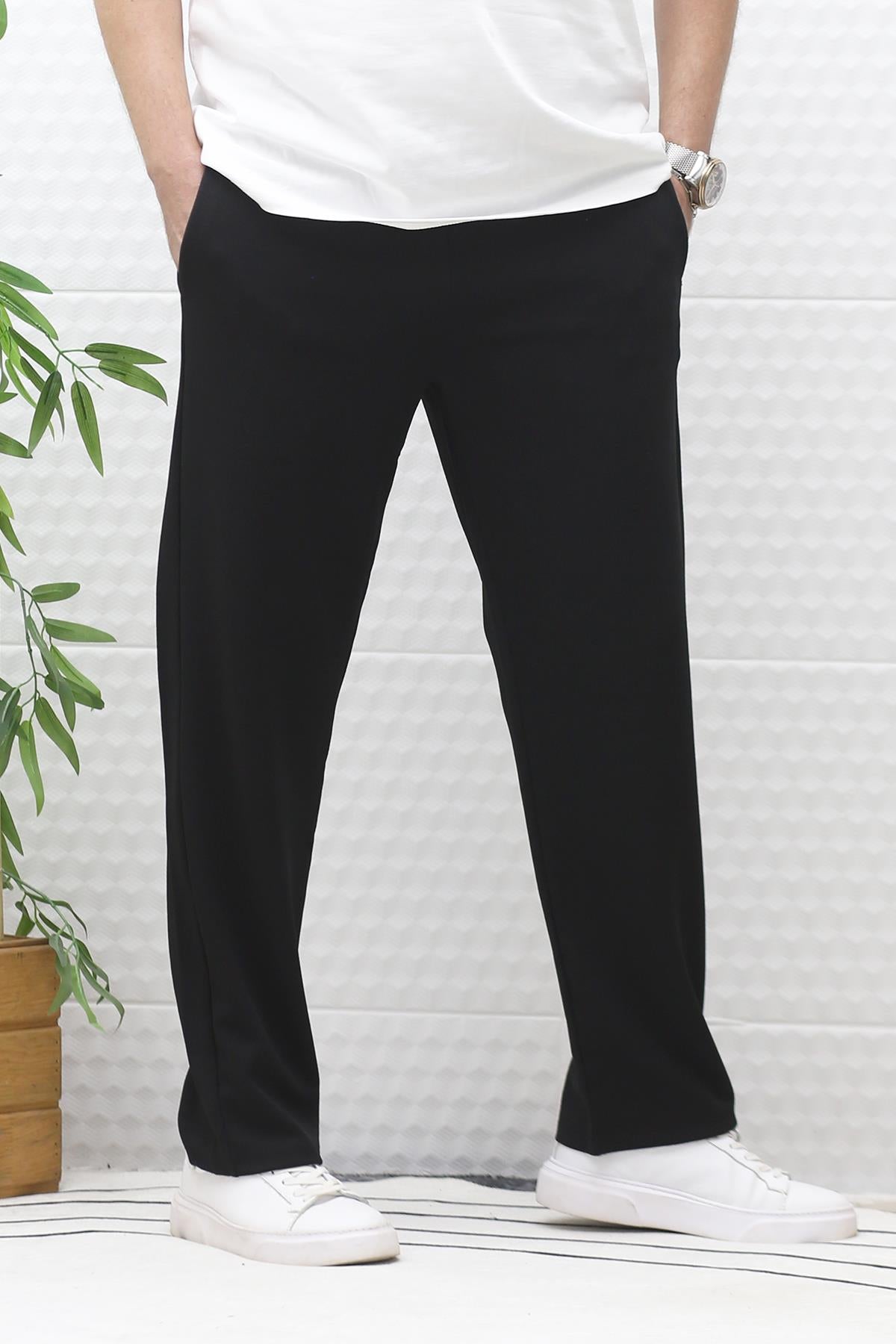 Erkek Full Likralı Rahat Kesim Baggy Pantolon Bel Lastikli - Siyah