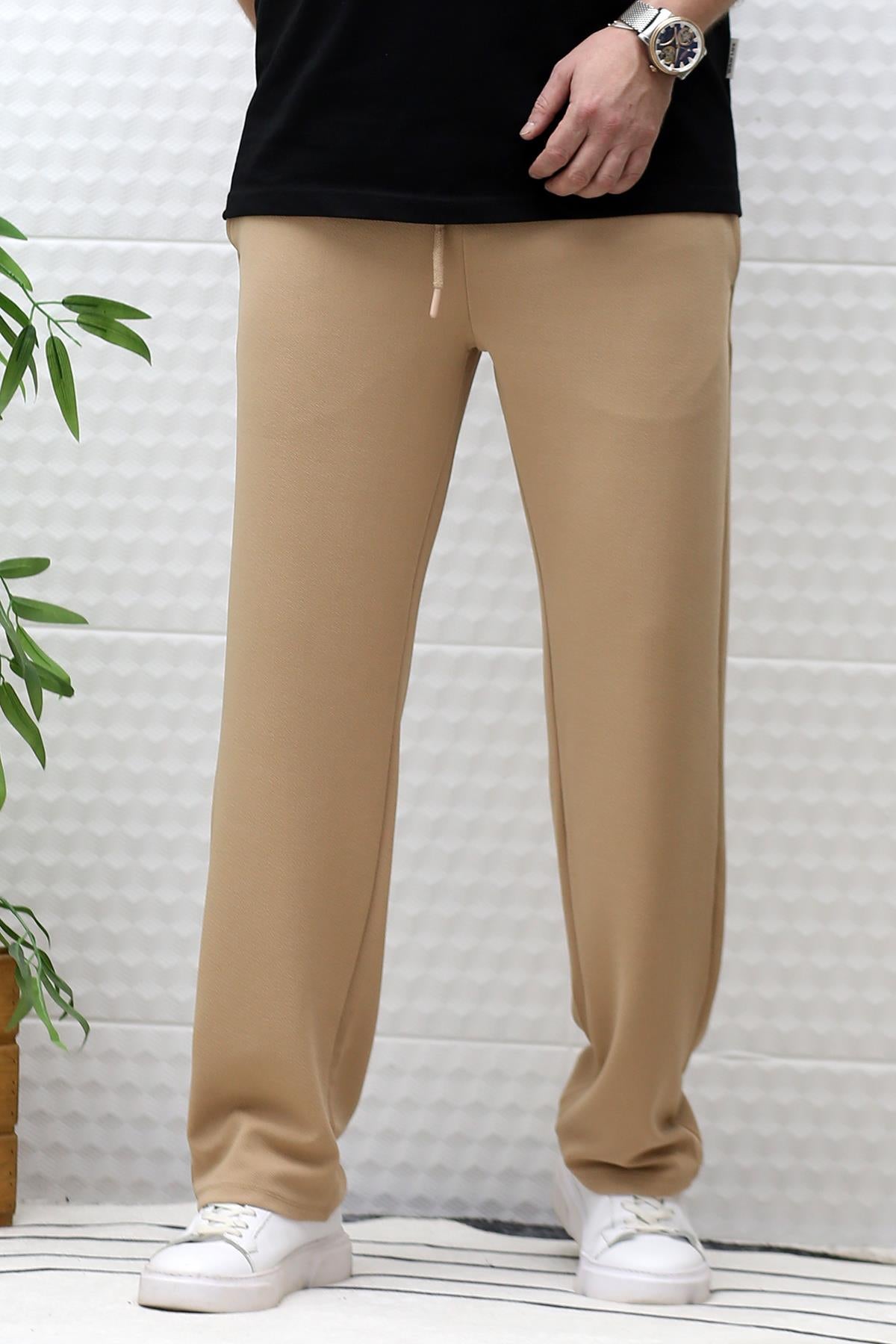 Erkek Full Likralı Rahat Kesim Baggy Pantolon Bel Lastikli - Sütlü Kahve