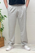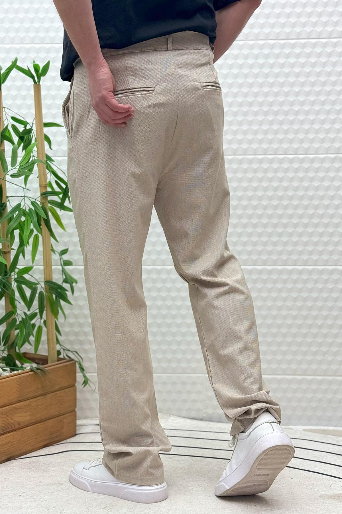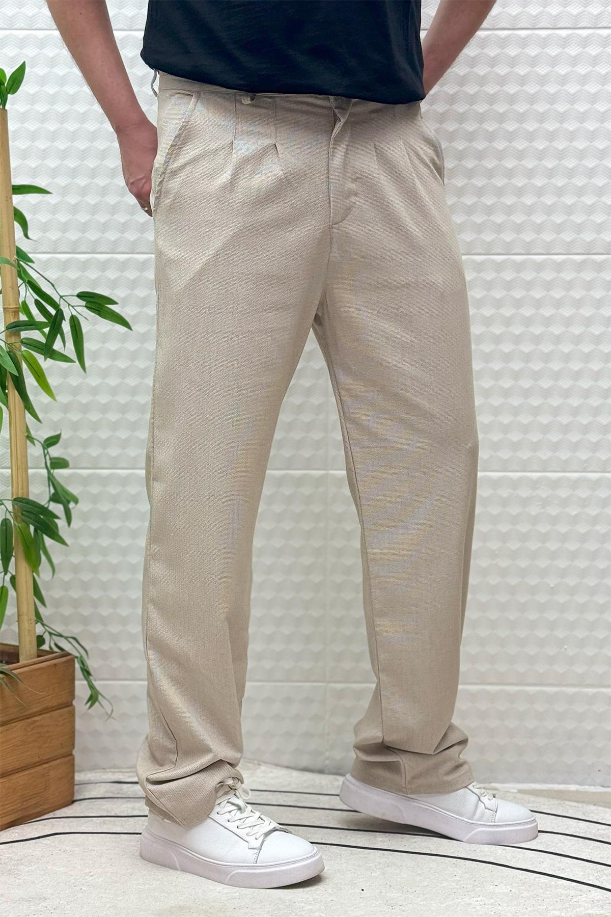 Erkek Gofre Keten Tiril Tiril Kumaş Baggy Pantolon - Bej