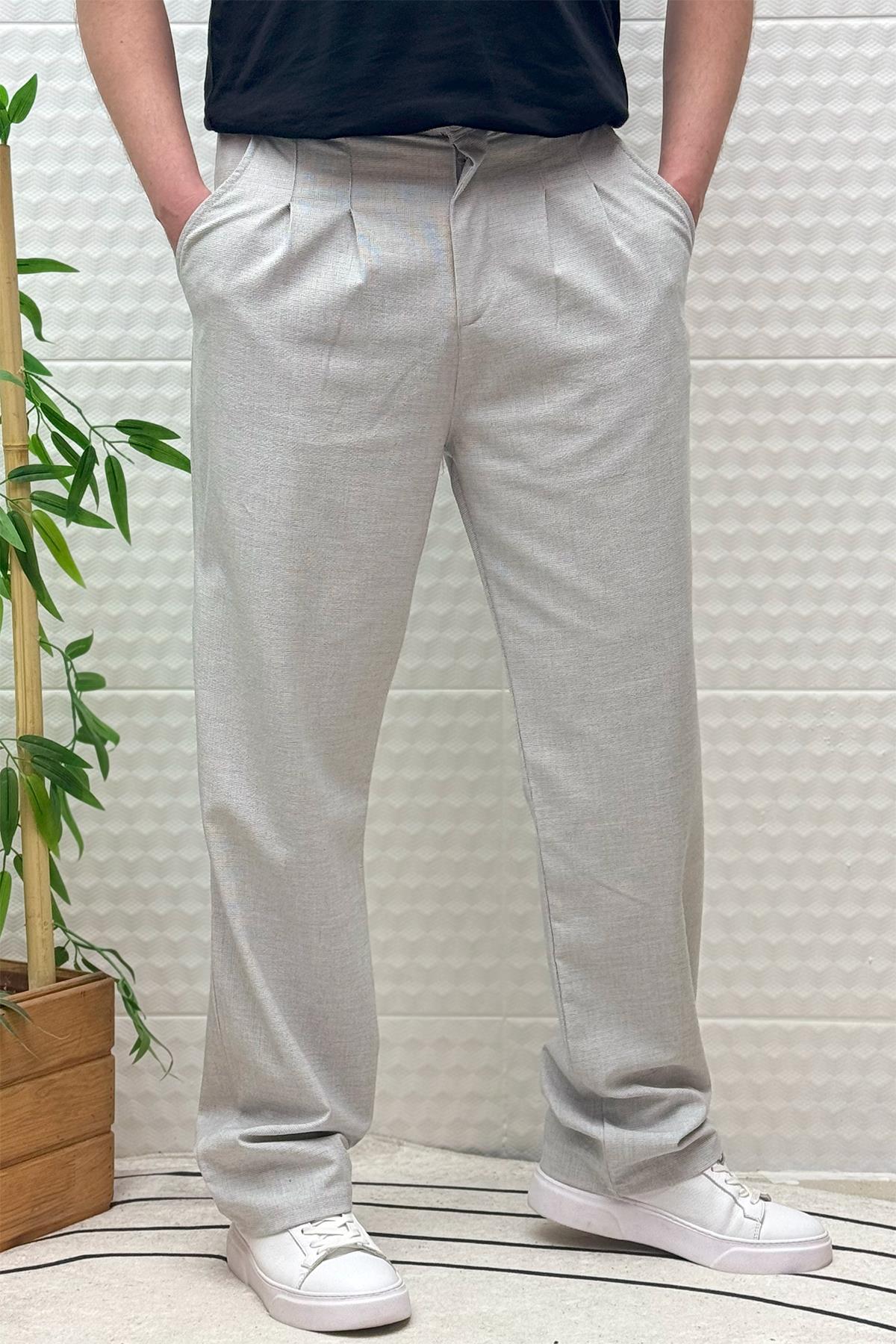 Erkek Gofre Keten Tiril Tiril Kumaş Baggy Pantolon - Gri