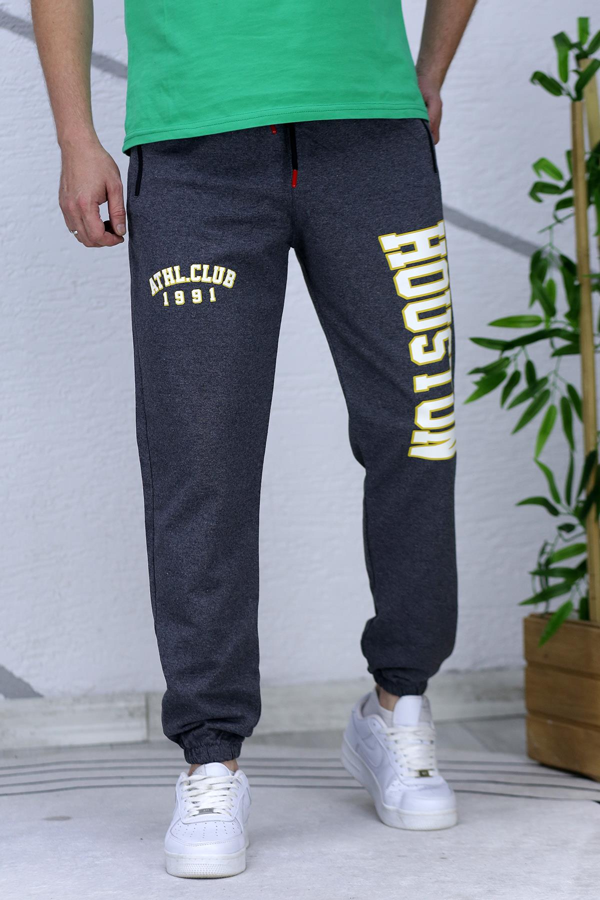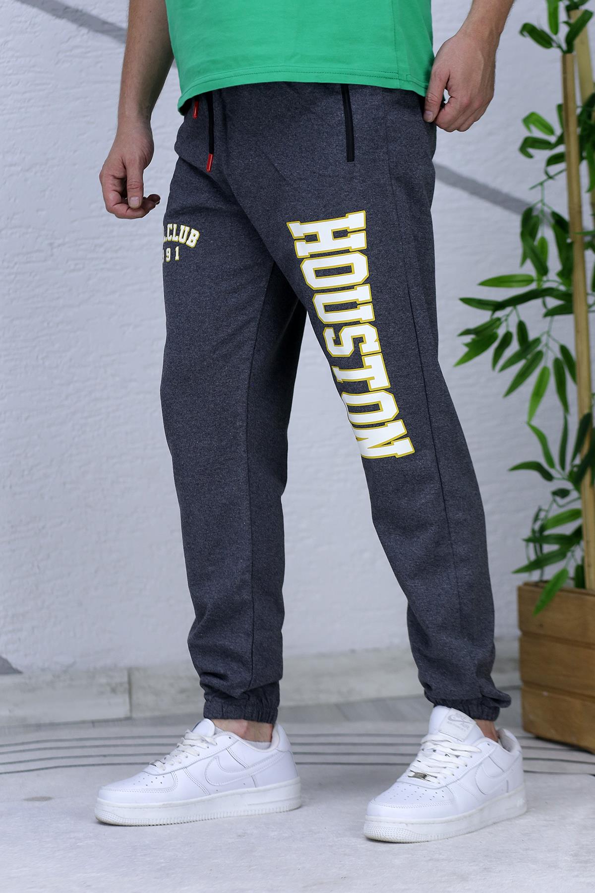 Erkek Houston Baskılı 2 İplik Mevsimlik Eşofman Altı - Antrasit