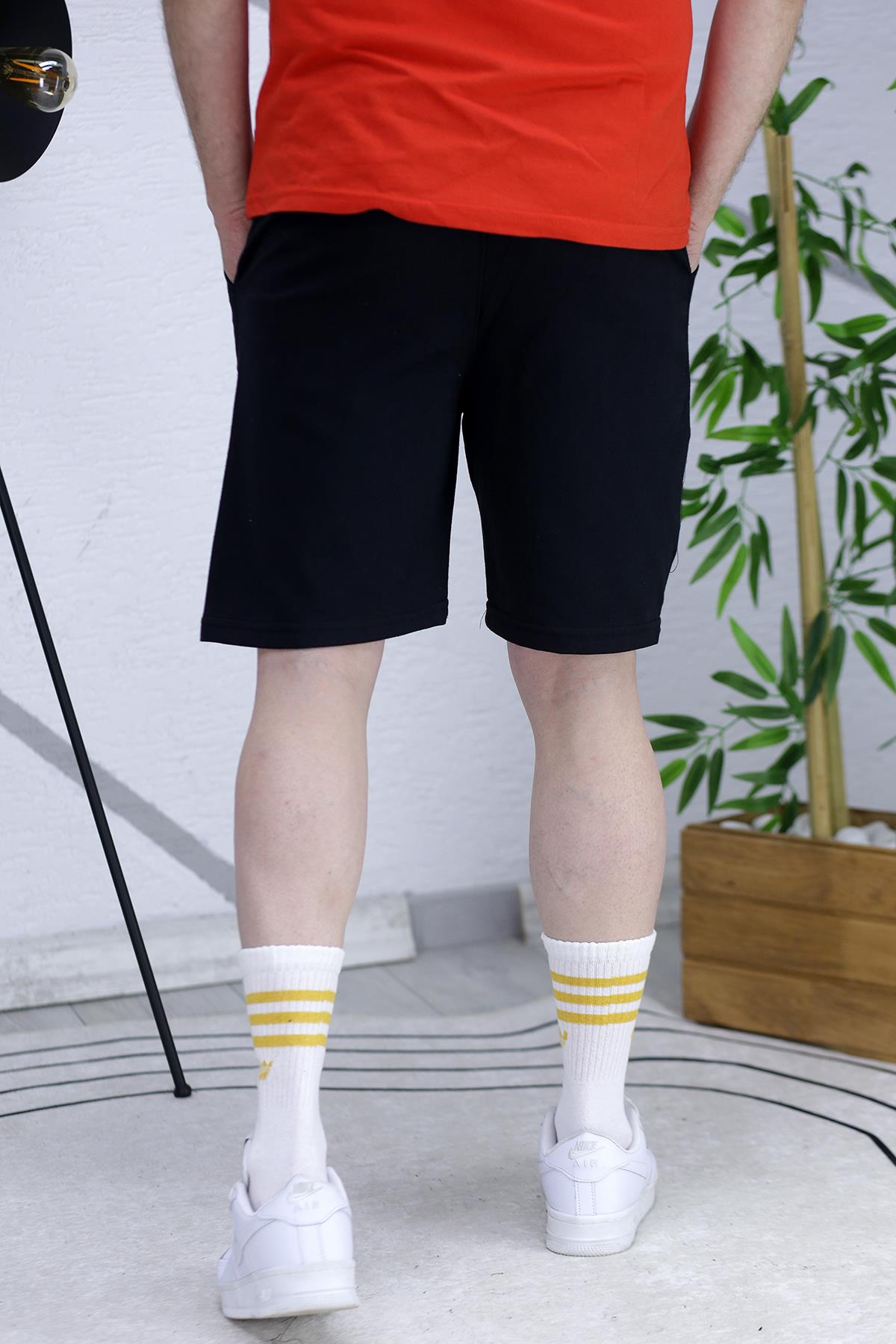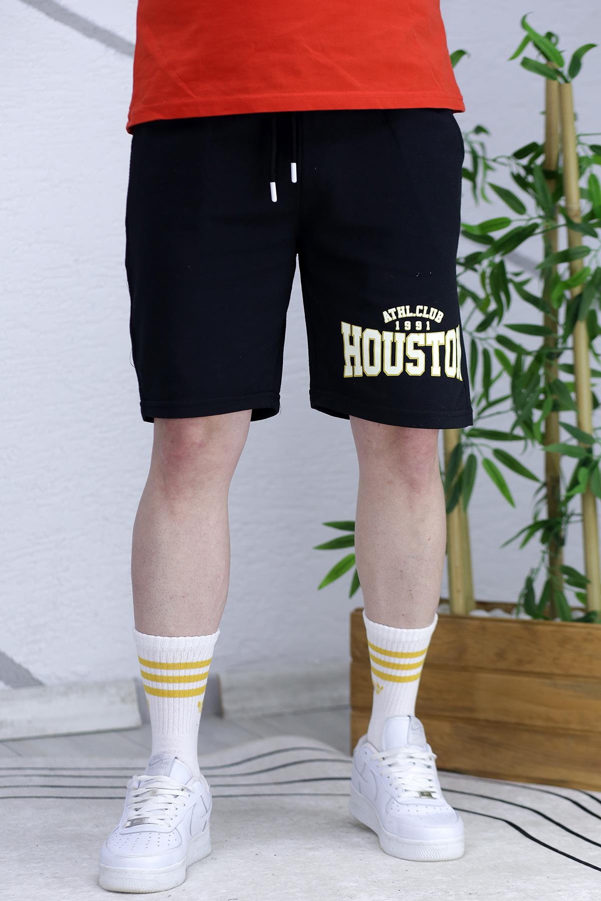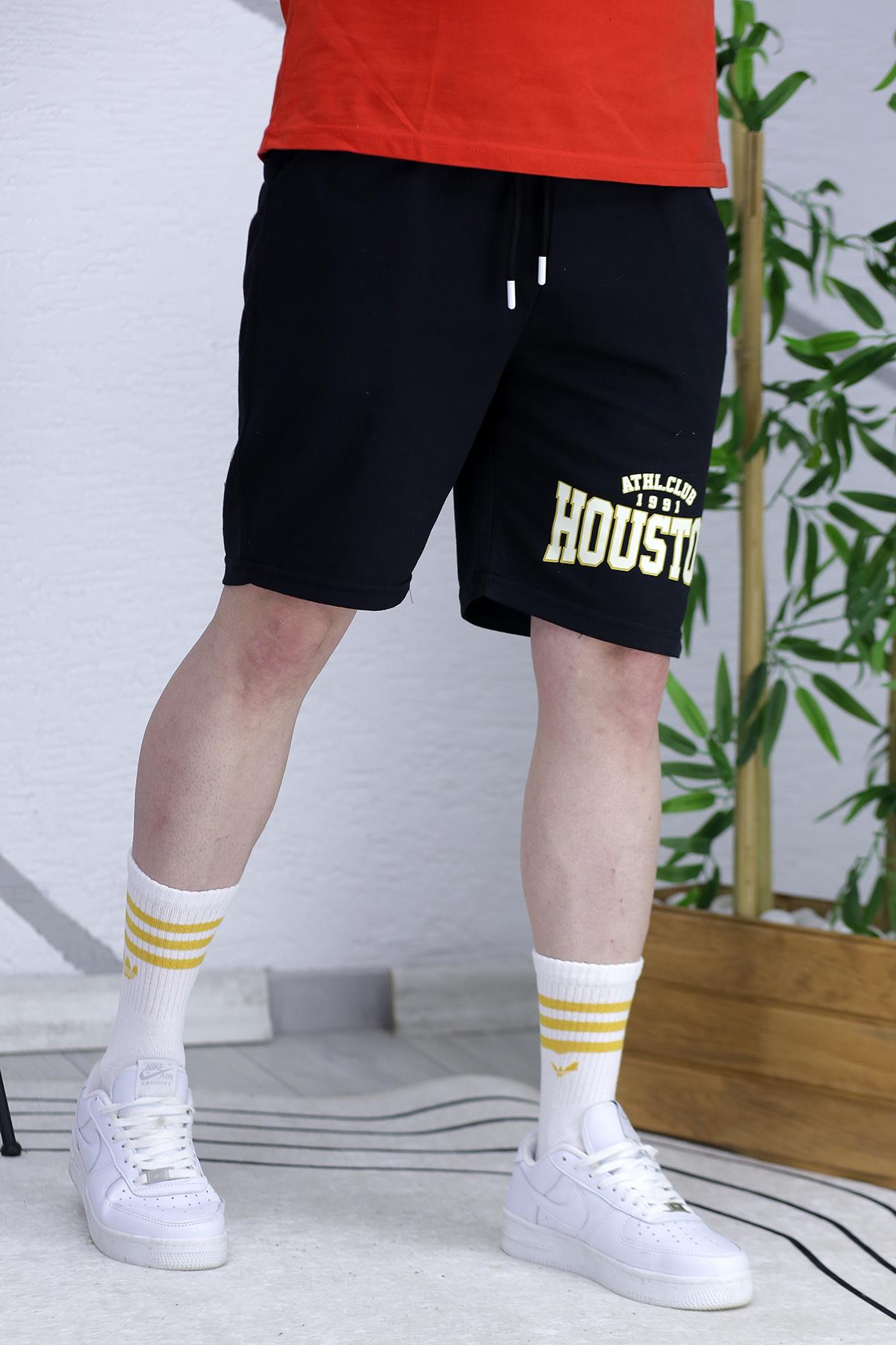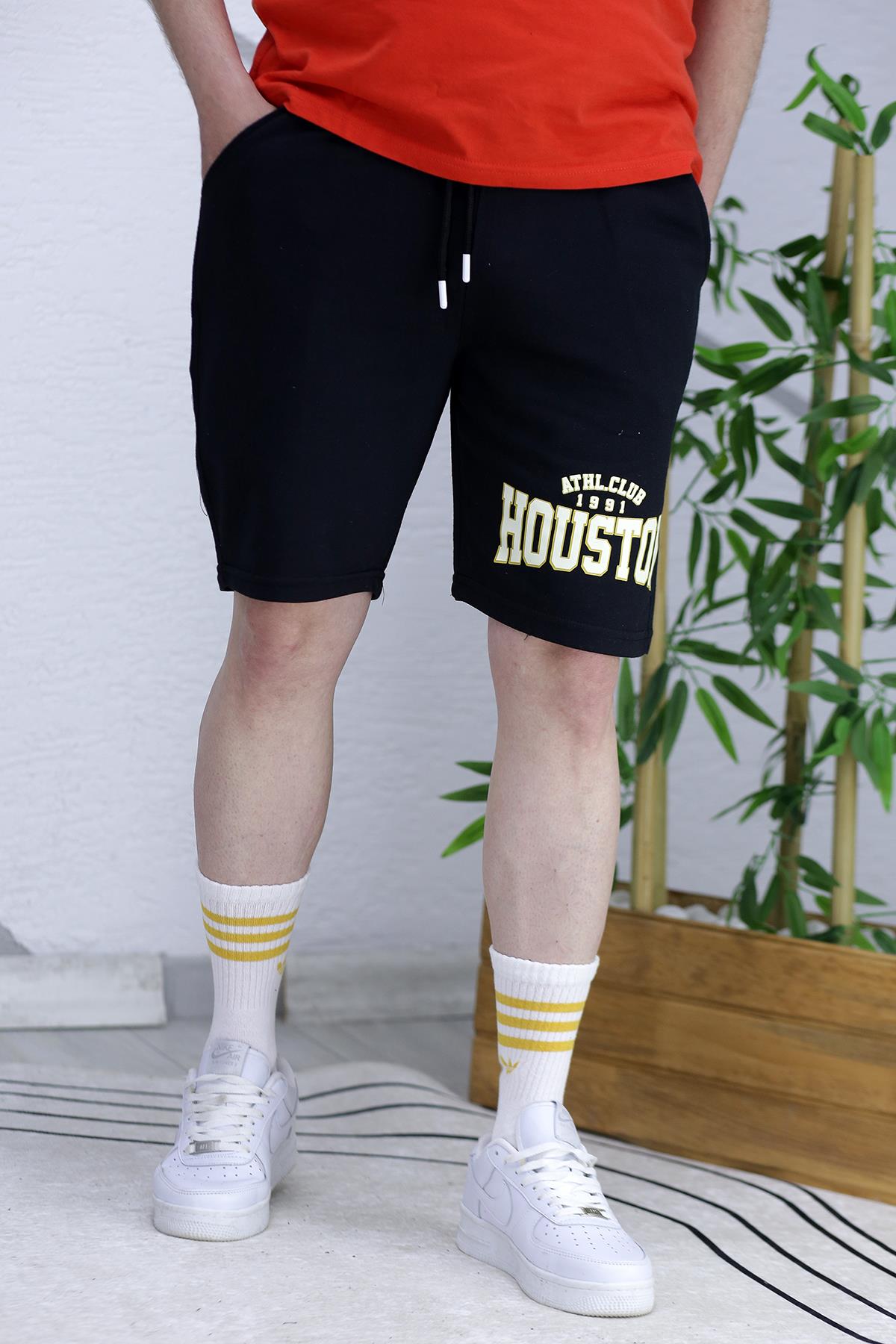 Erkek Houston Baskılı Yazlık penye Şort - Siyah