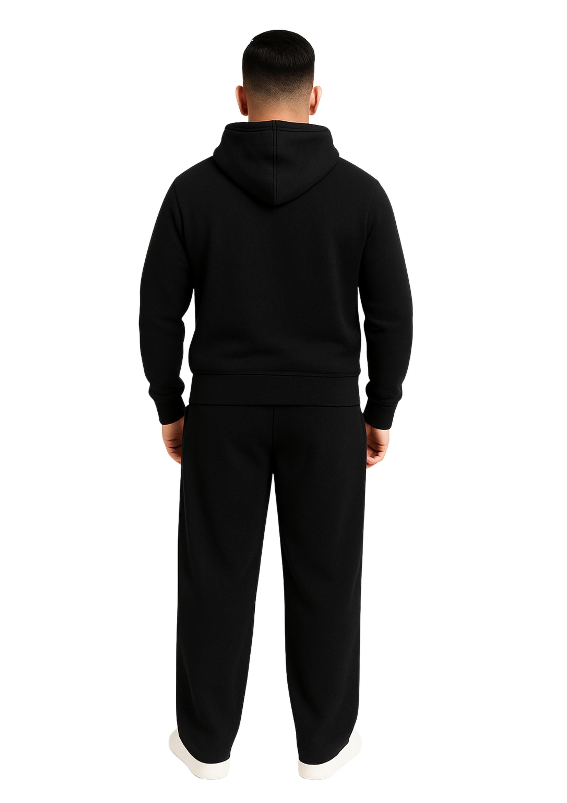 Erkek Kapşonlu 2 İplik Şardonlu Baggy Eşofman Takımı - Siyah