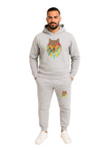 Erkek Kapşonlu 2 İplik Şardonlu Paça Lastikli Eşofman Takımı - Gri