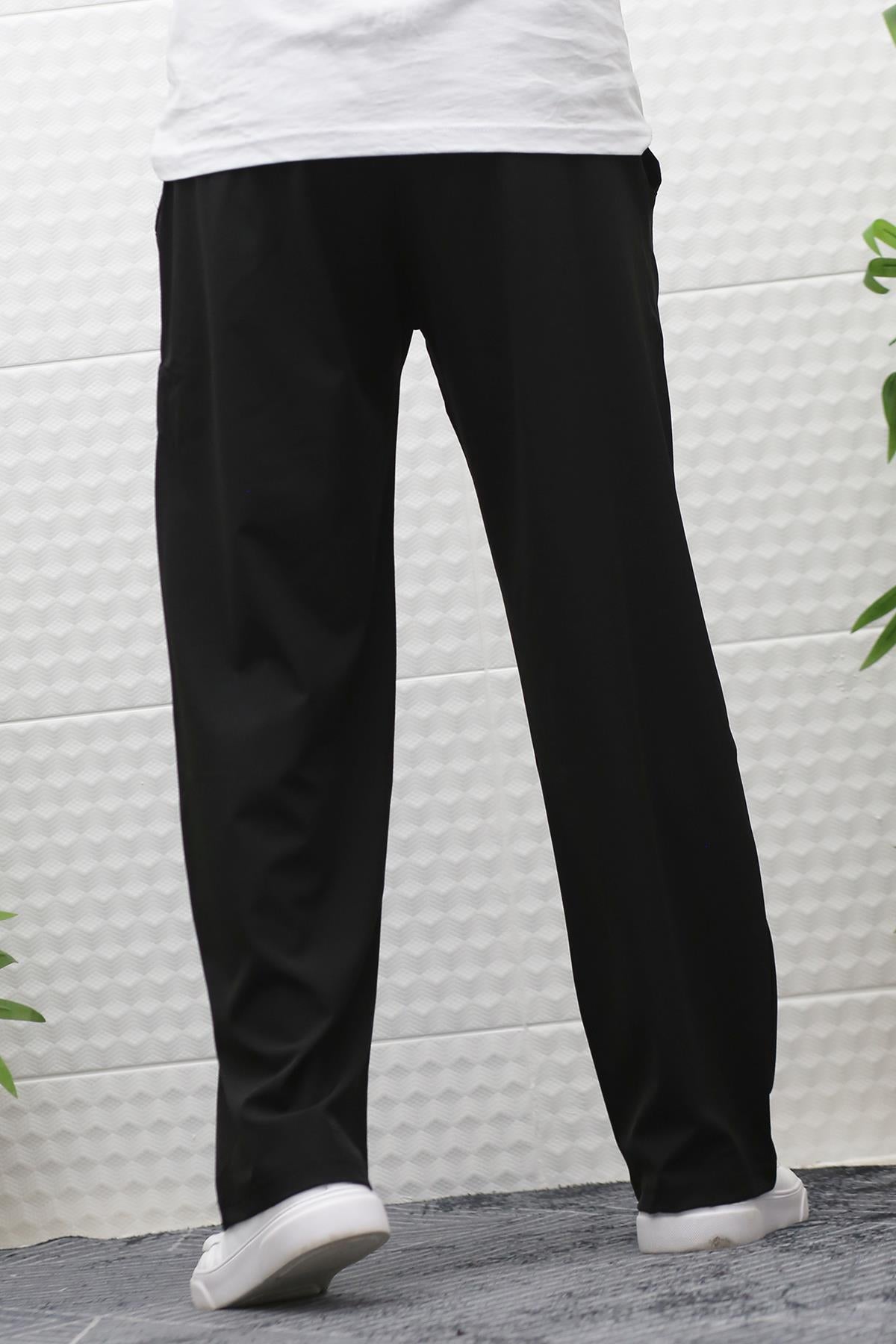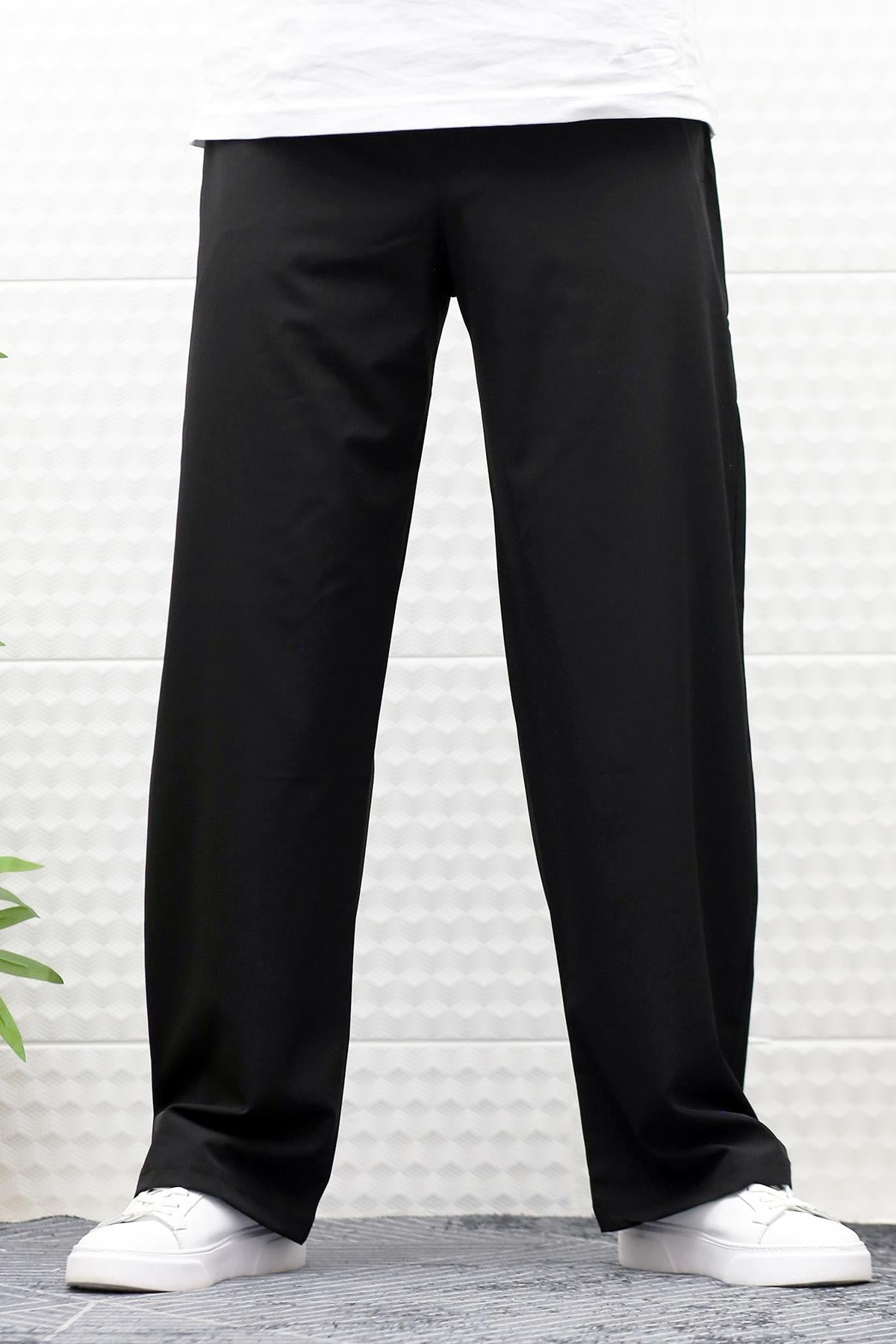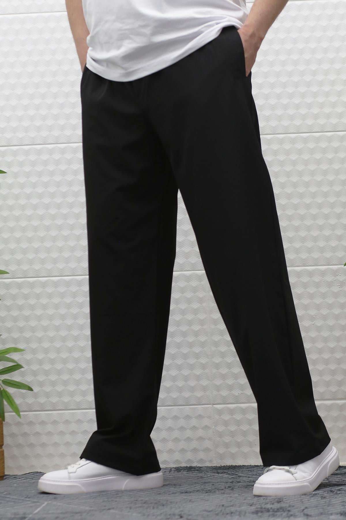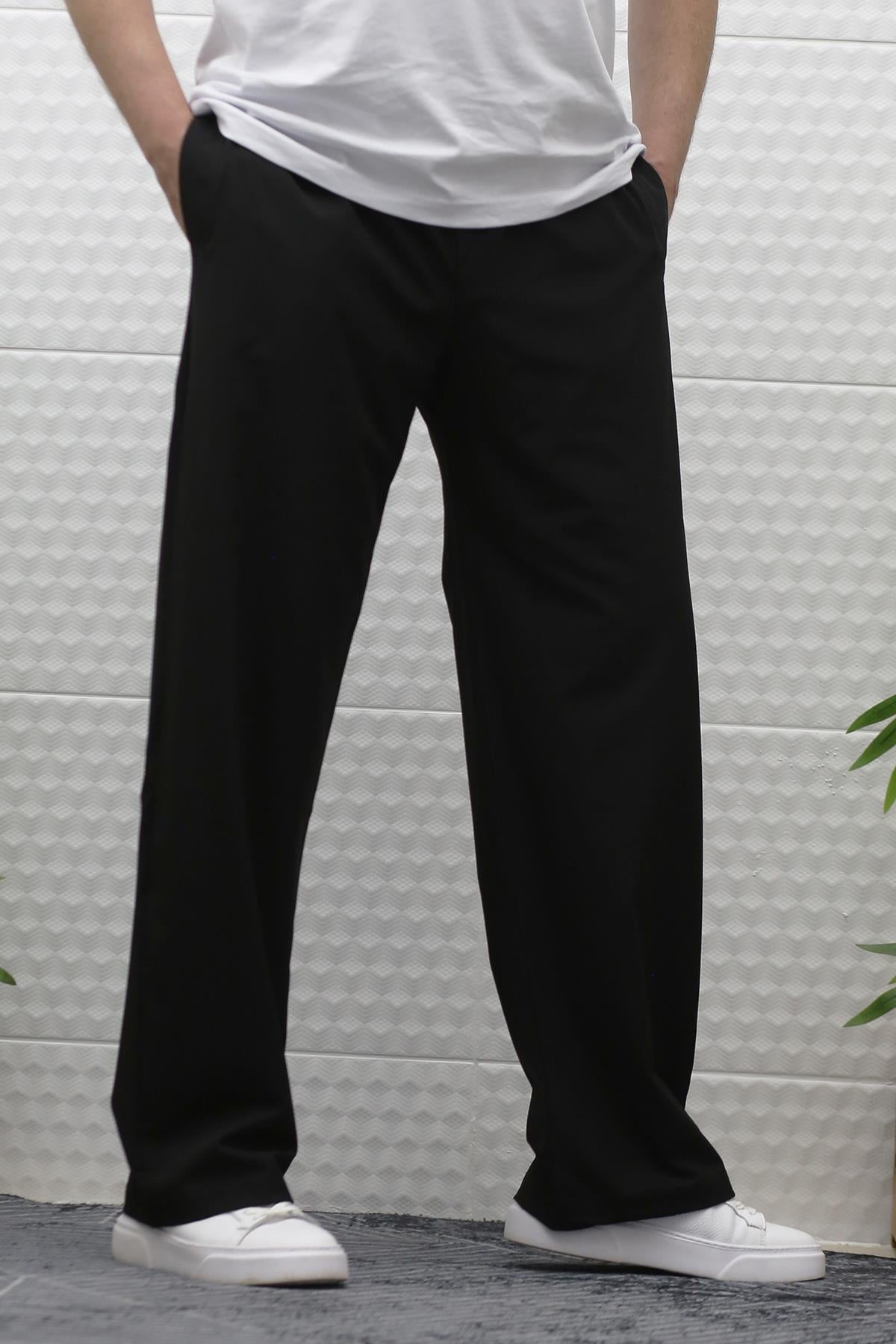 Erkek Likralı Baggy Pantolon Düz Paça Paraşüt Kumaş Pantolon - Siyah