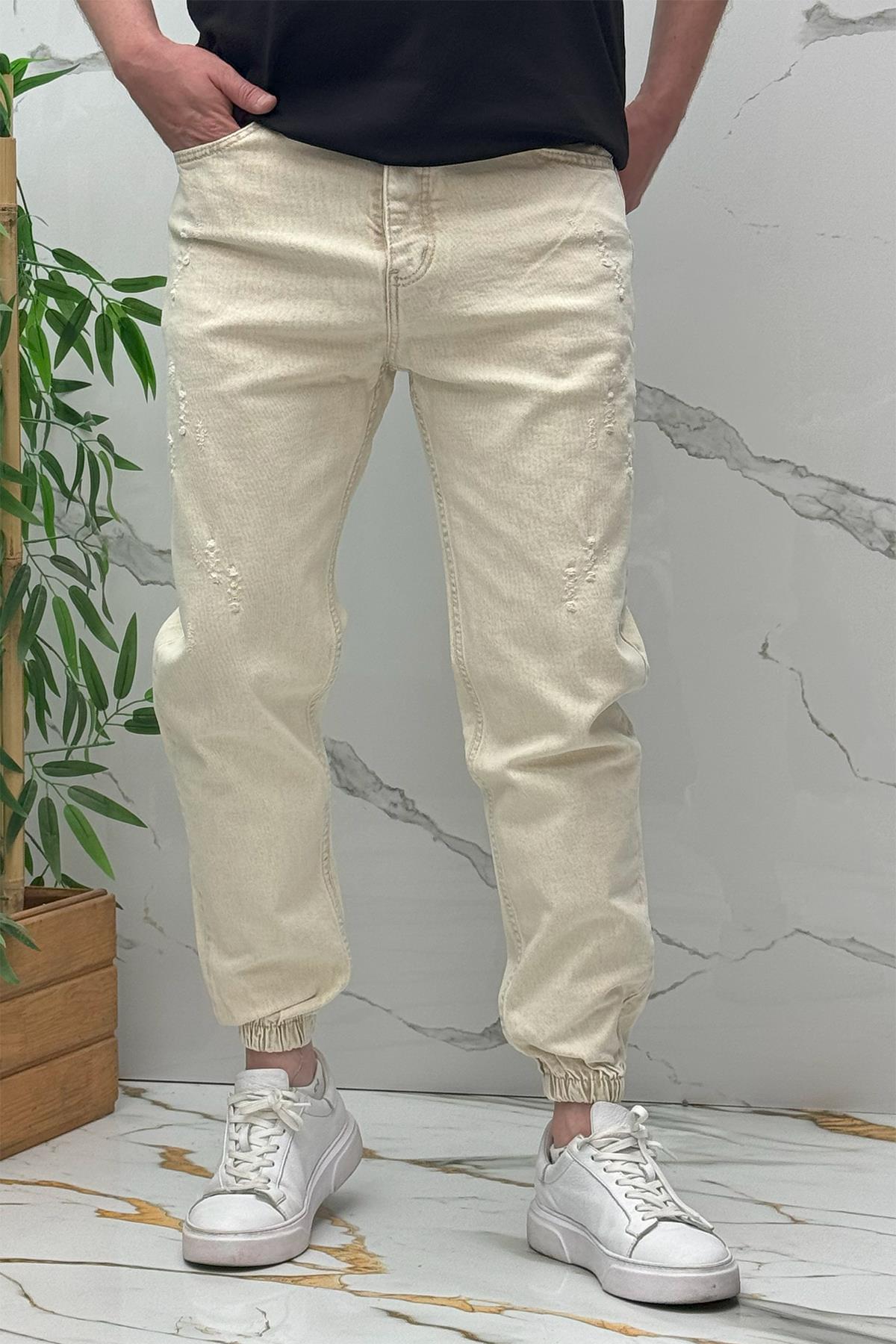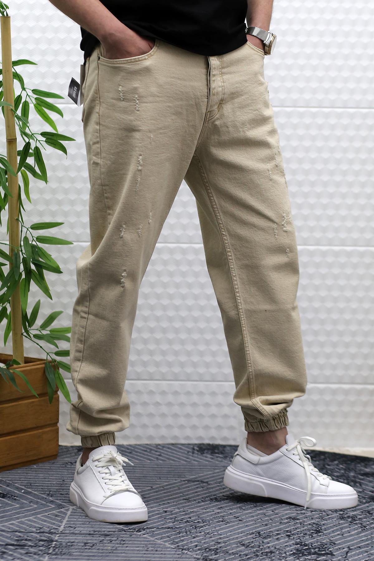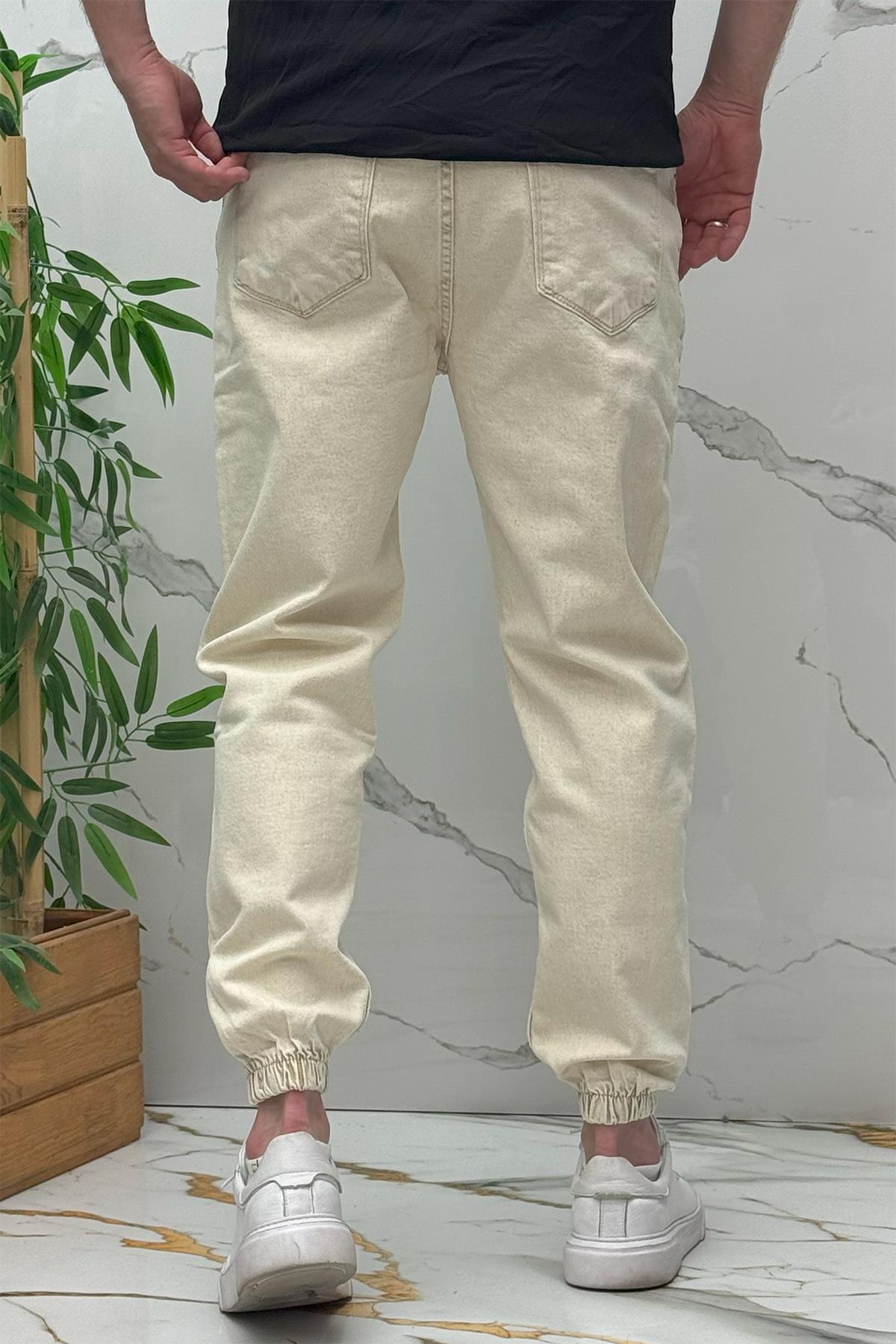 Erkek Paçası Lastikli Tırnaklı Boyfiren Kot Pnt. 646 - Bej