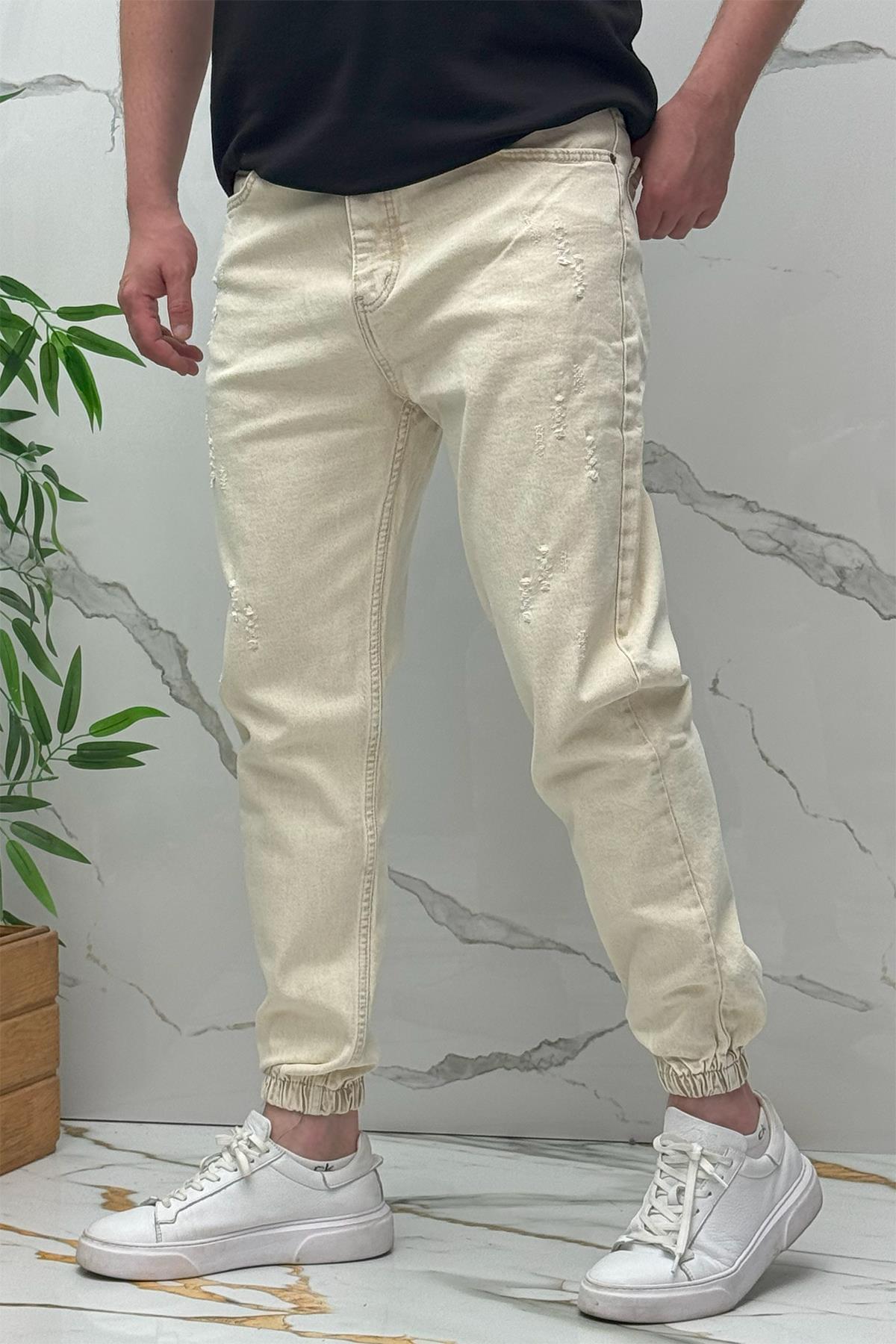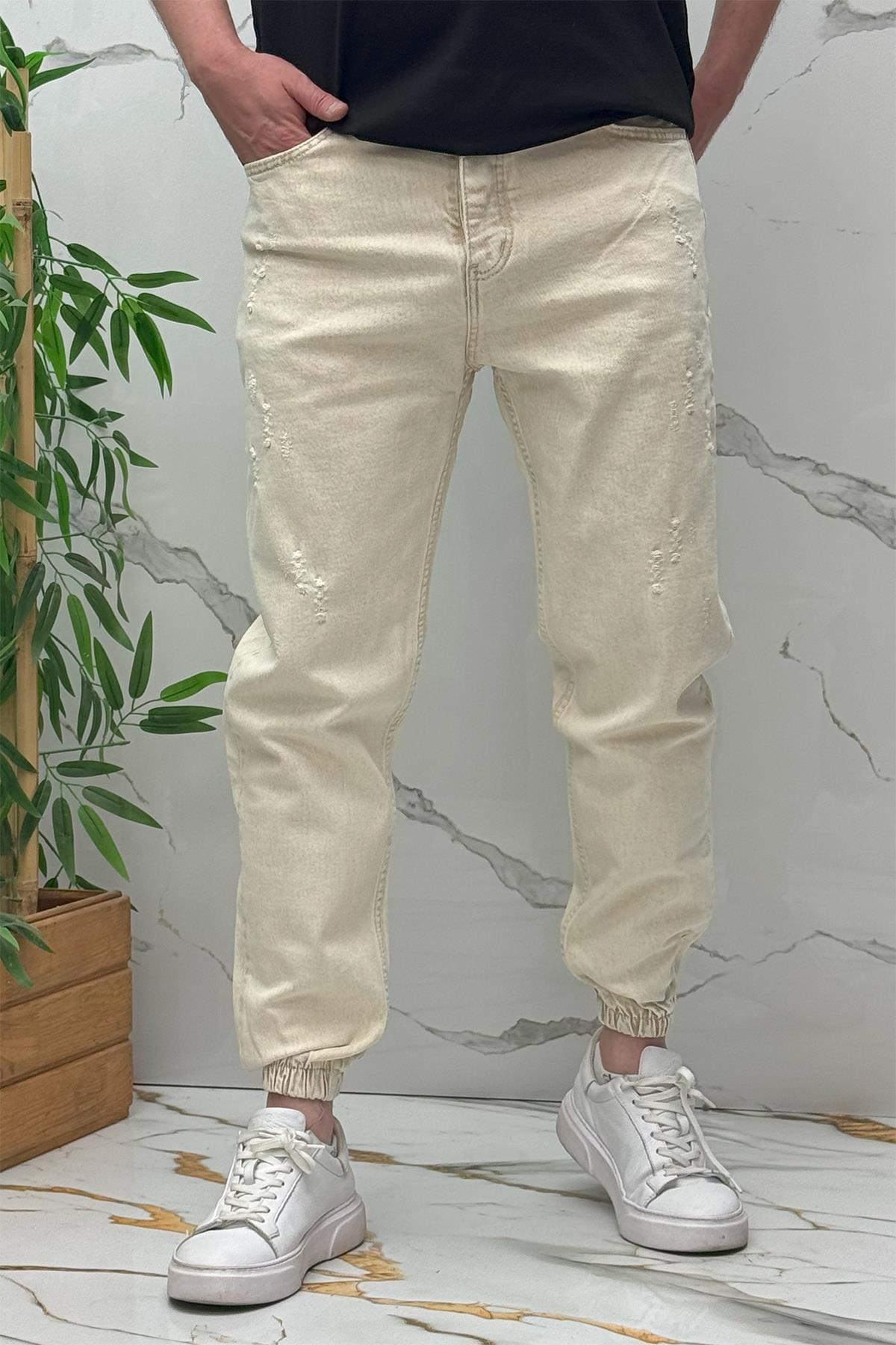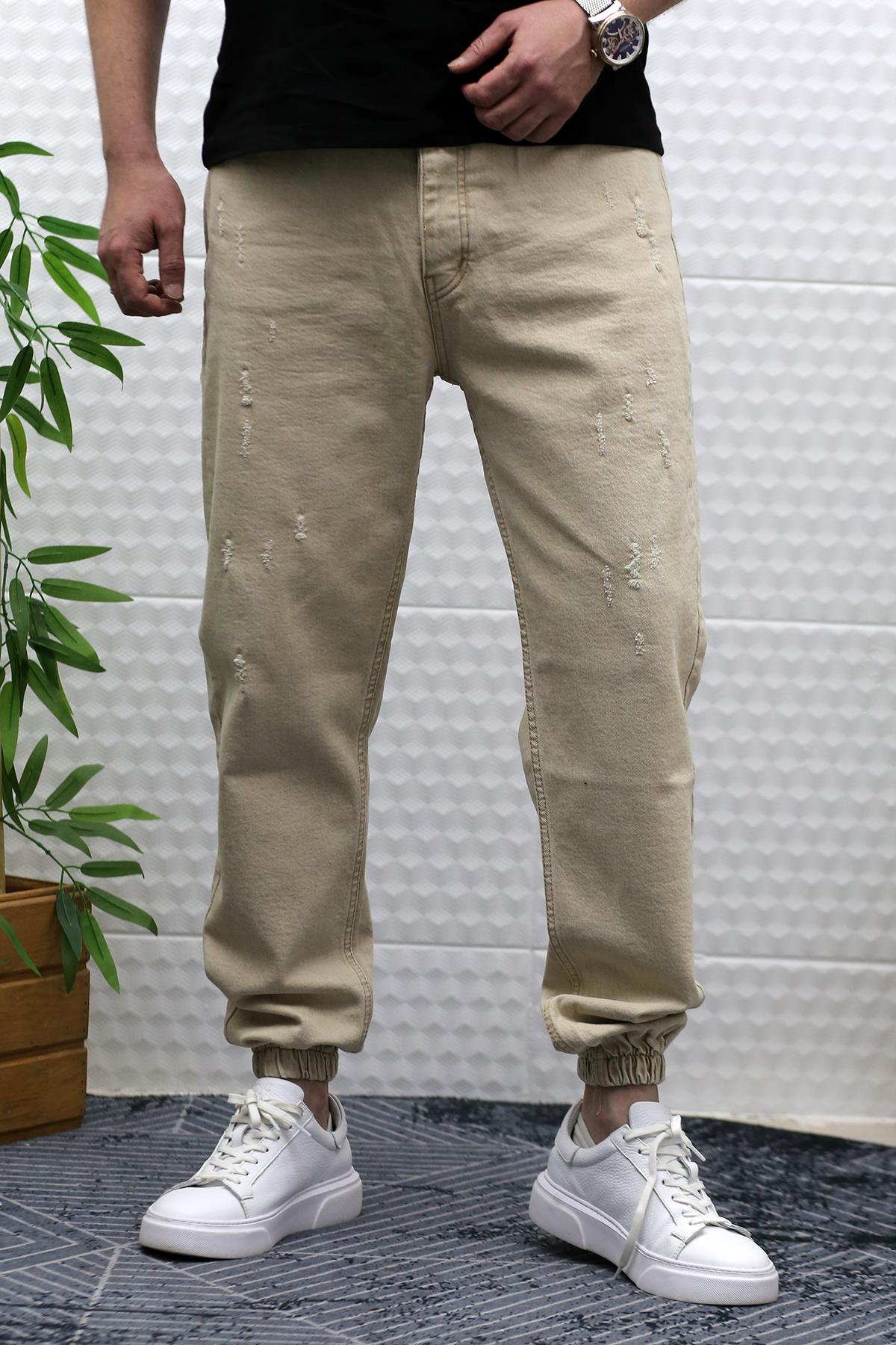 Erkek Paçası Lastikli Tırnaklı Boyfiren Kot Pnt. 646 - Bej