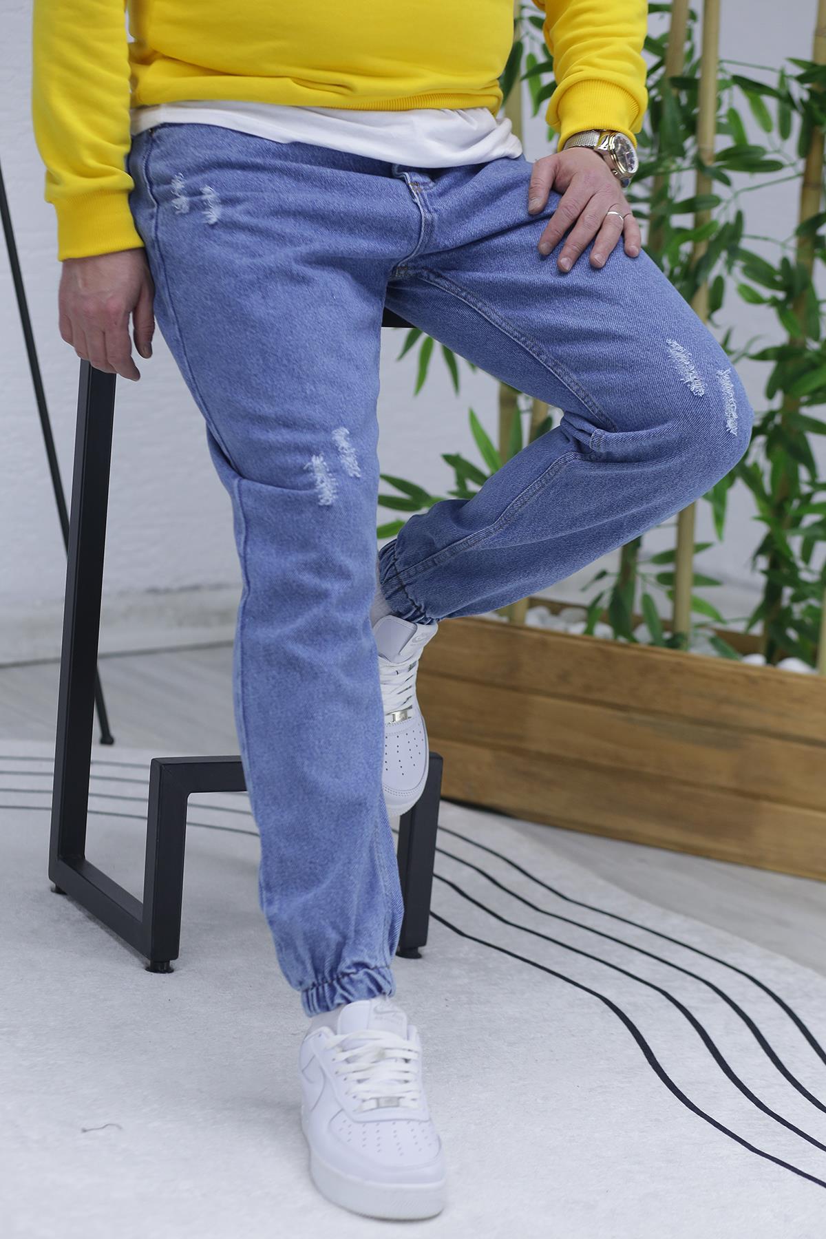 Erkek Paçası Lastikli Tırnaklı Boyfiren Kot Pnt. 646 - Buz Mavi