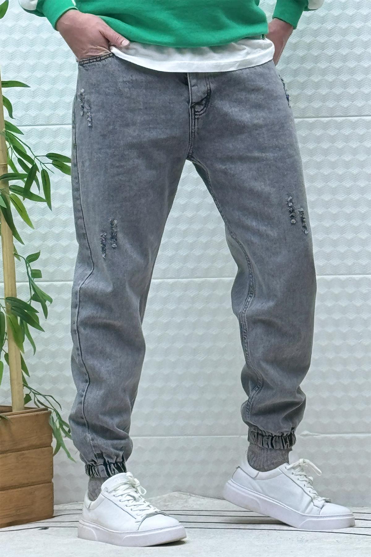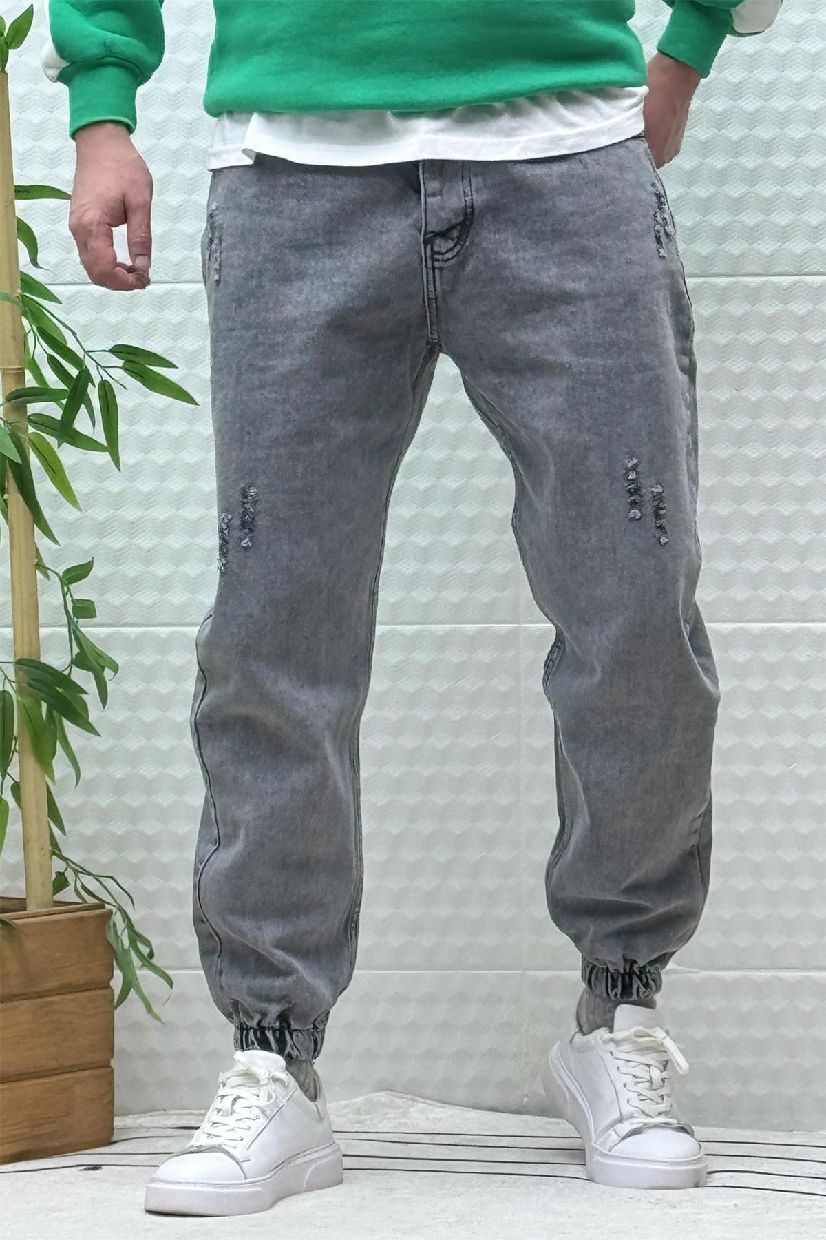 Erkek Paçası Lastikli Tırnaklı Boyfiren Kot Pnt. 646 - Koyu Gri
