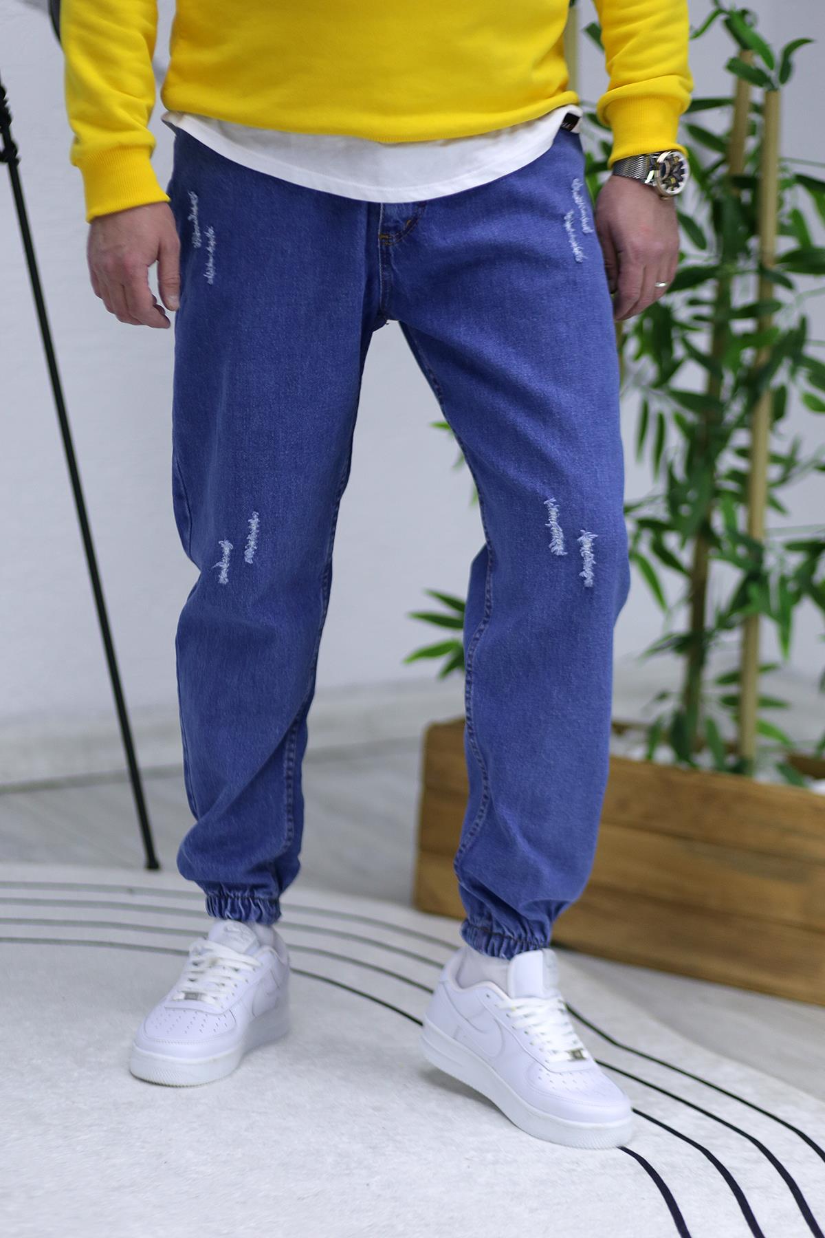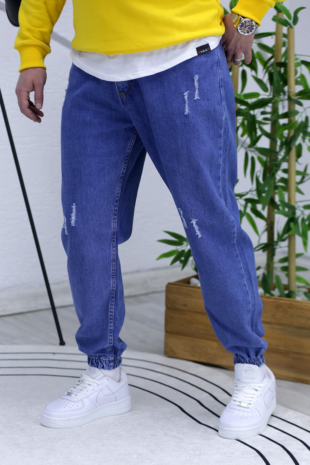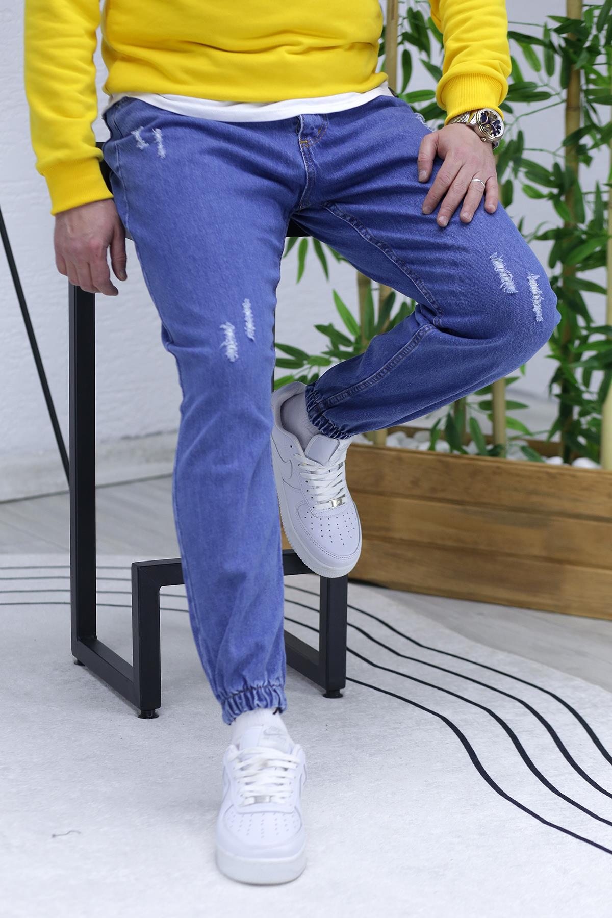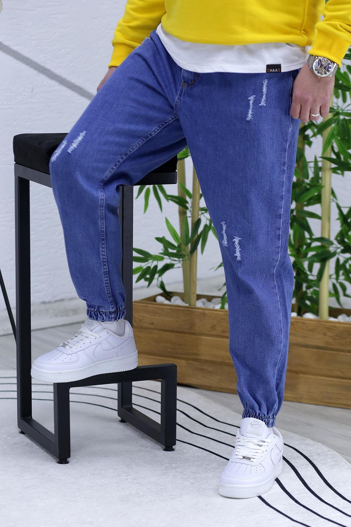 Erkek Paçası Lastikli Tırnaklı Boyfiren Kot Pnt. 646 - Koyu Mavi
