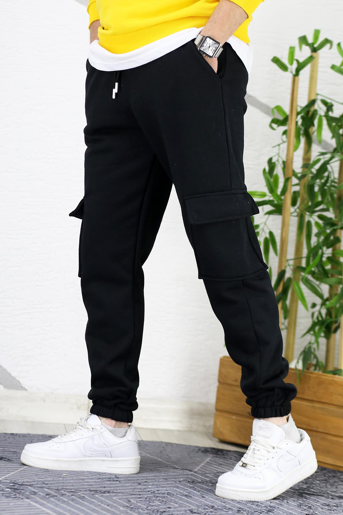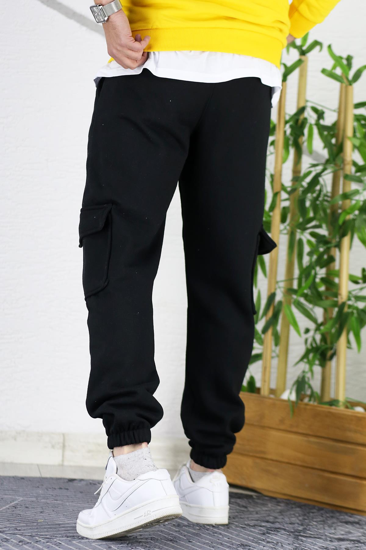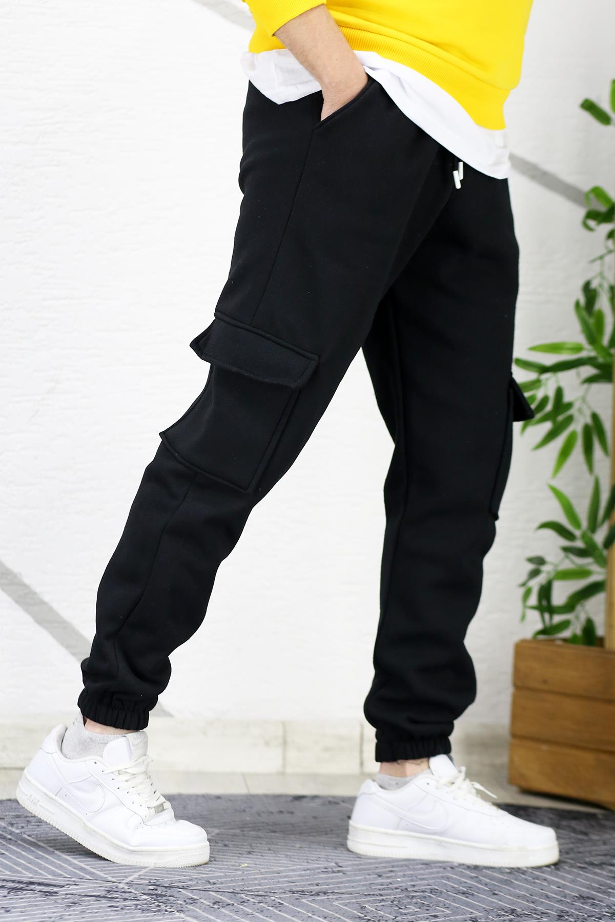 Erkek Üç İplik Şadonlu Kargo Cepli Eşofman Altı - Siyah