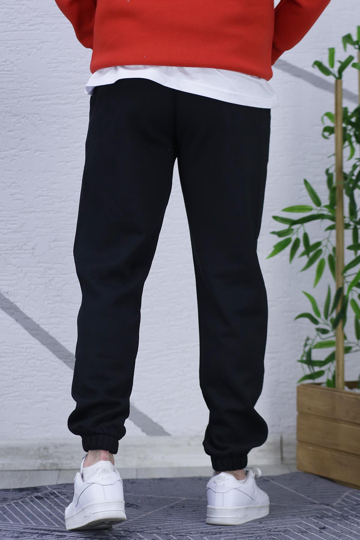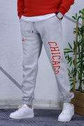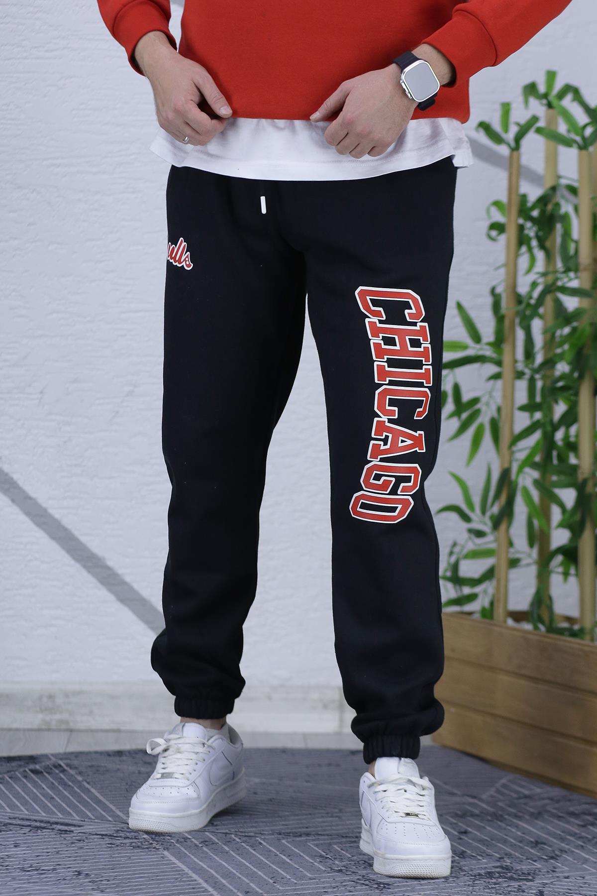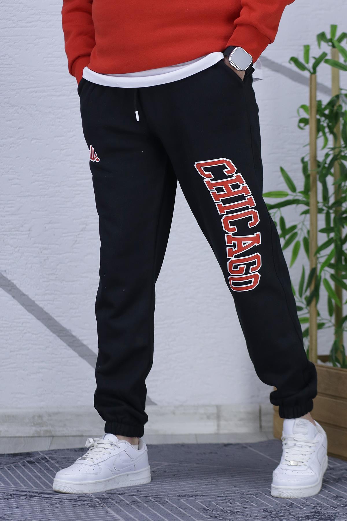 Erkek Üç İplik Şardonlu Eşofman Altı Chicago Baskı - Siyah