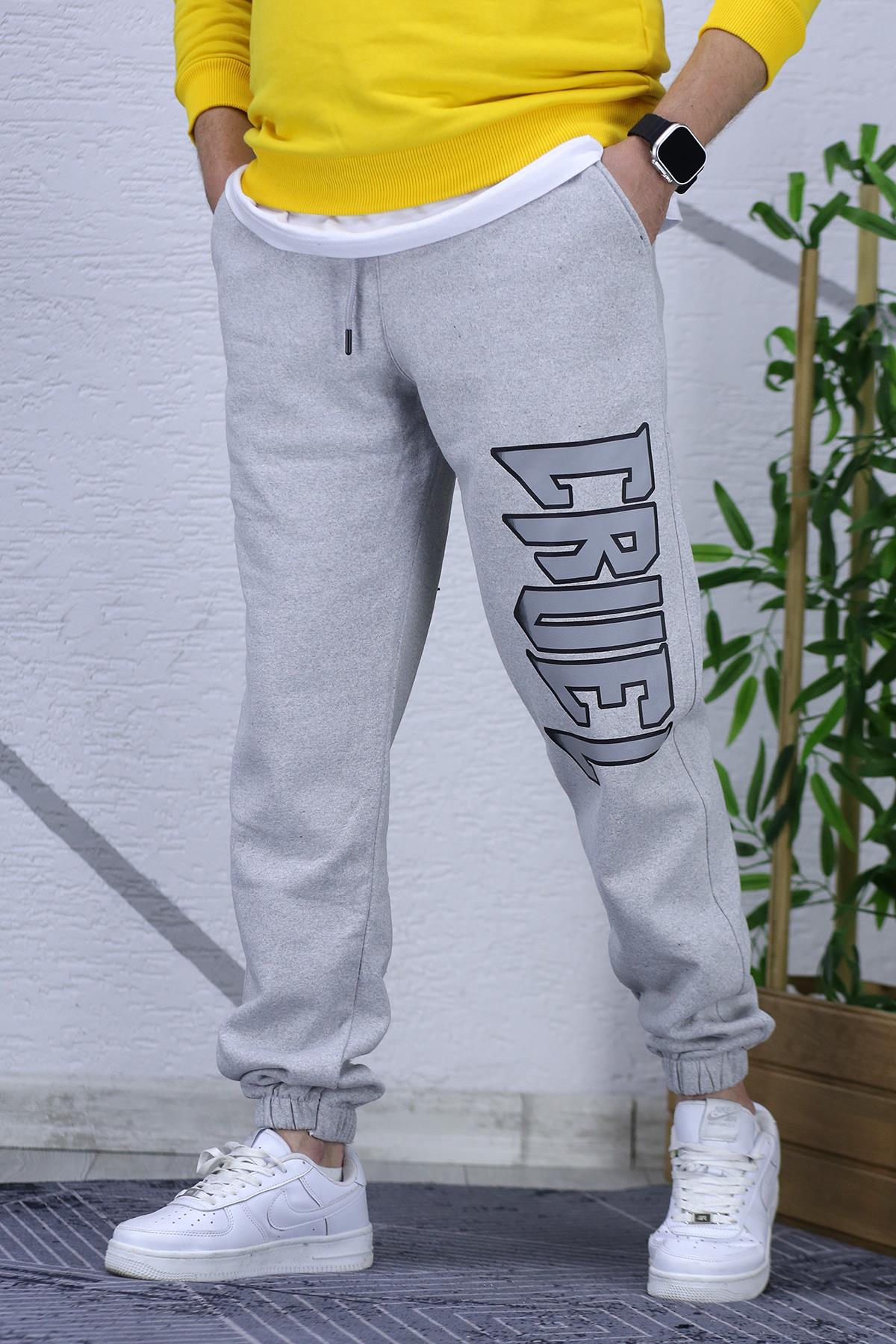 Erkek Üç İplik Şardonlu Eşofman Altı Cruel Baskı - Gri