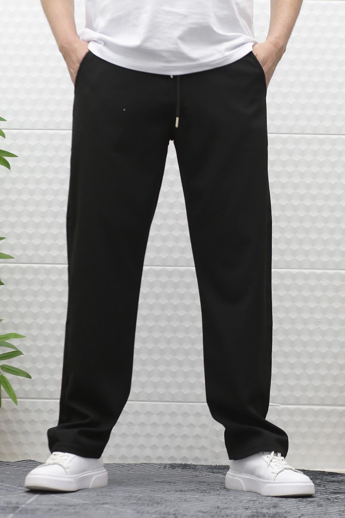Erkek Yazlık Kumaş Baggy Beli Lastikli Pantolon - Siyah
