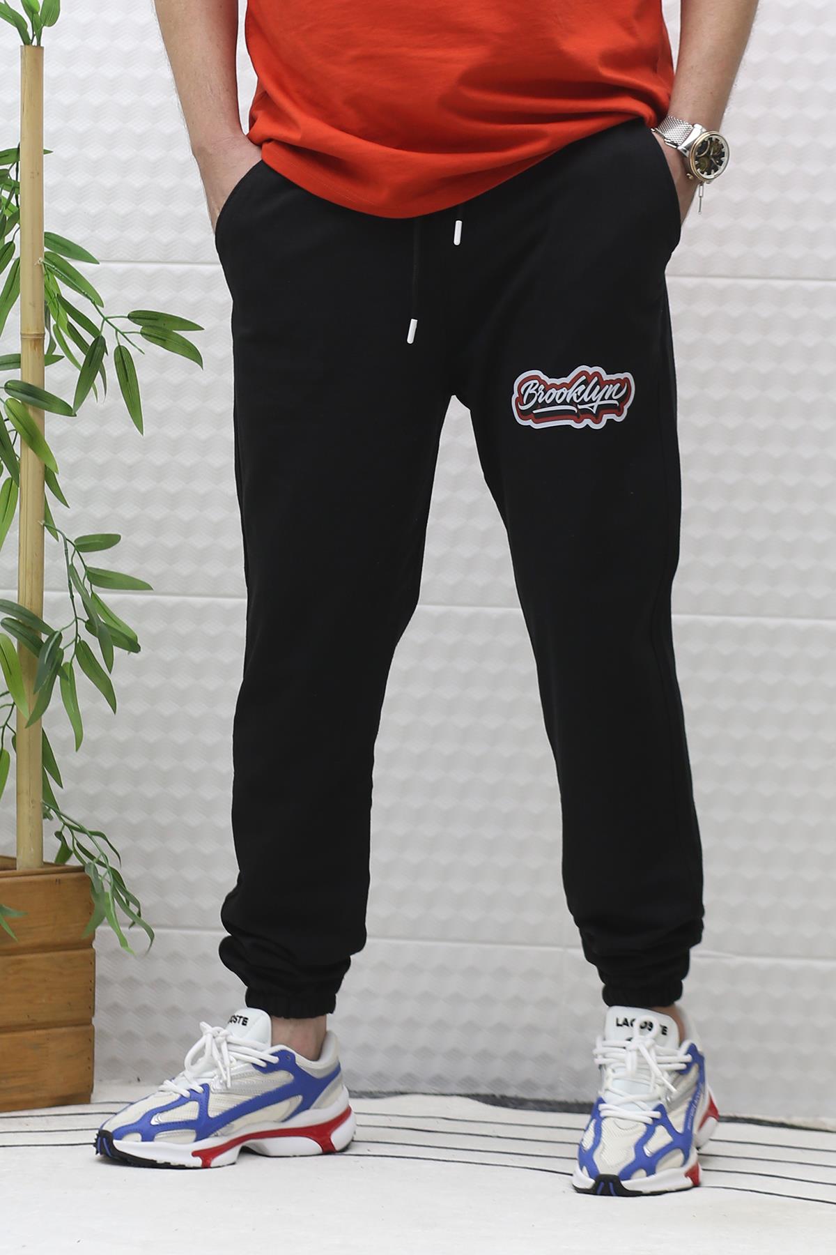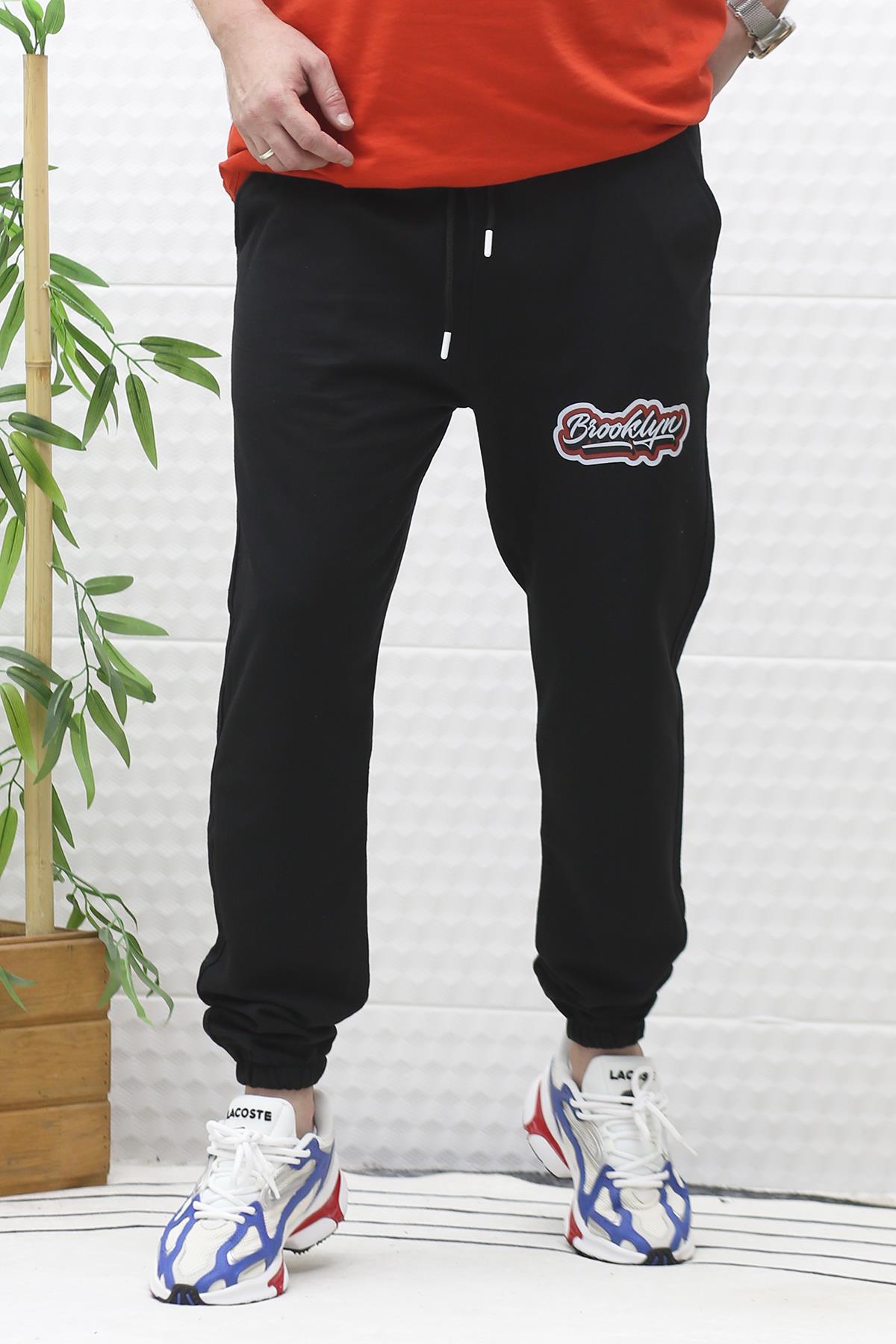 Erkek Yazlık Penye Eşofman Altı Brooklyn Baskı - Siyah