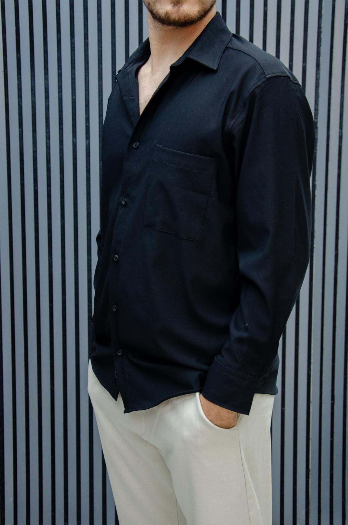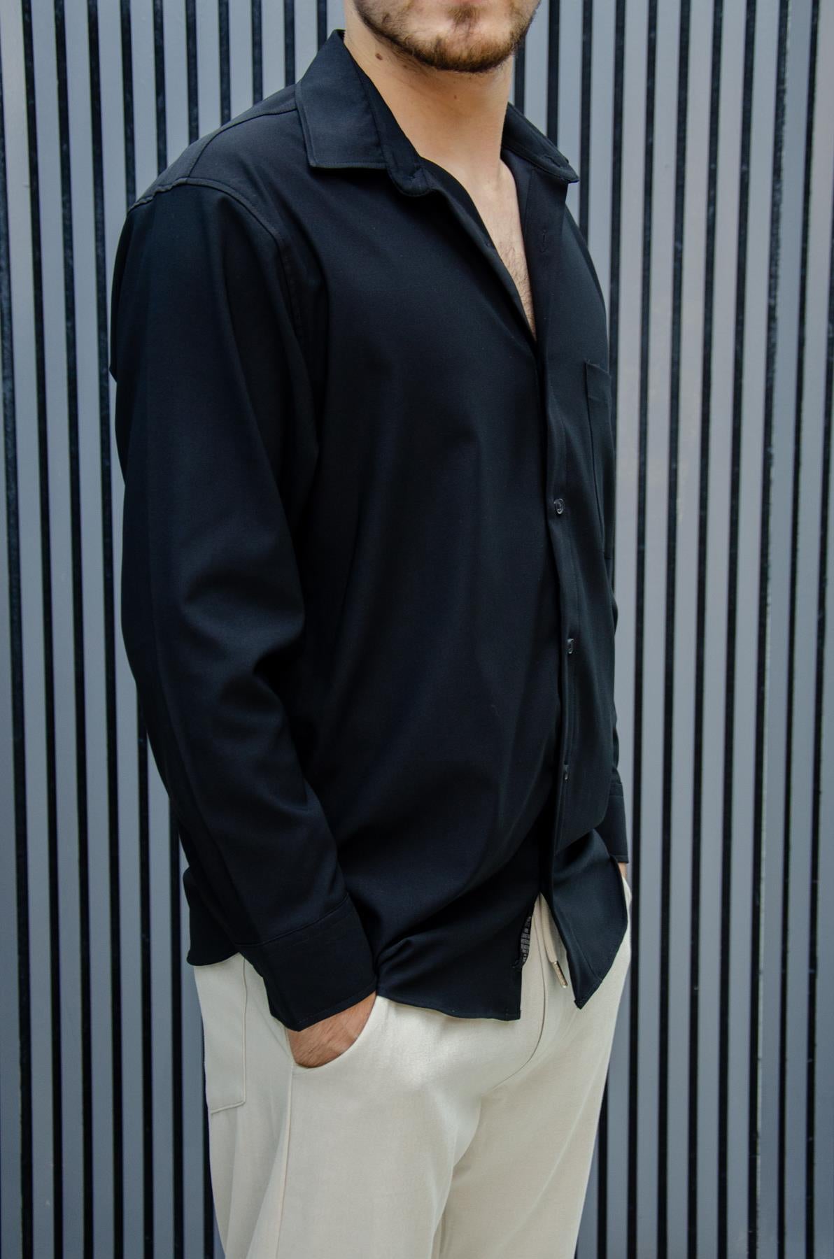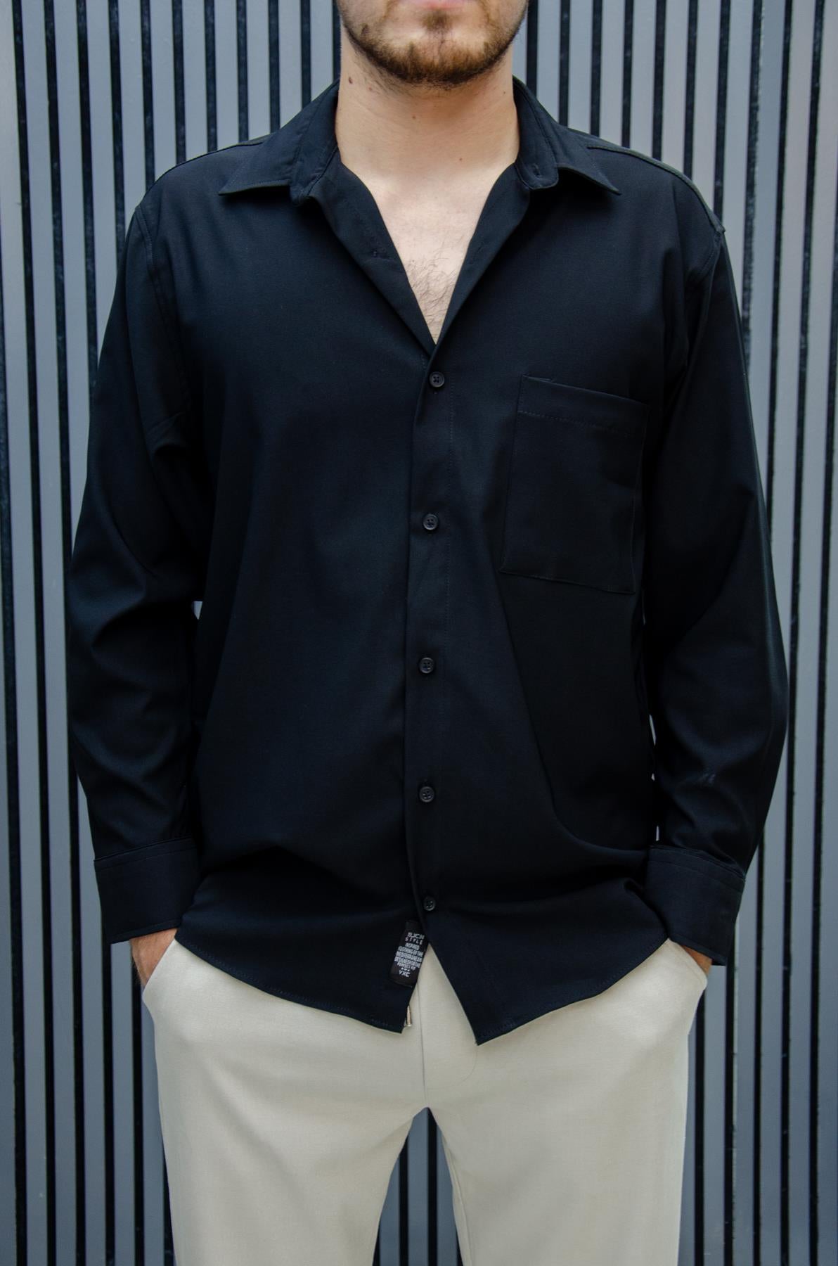 Erkek Yazlık Tiril Tiril Aktüs Cepli Oversize Gömlek - Siyah