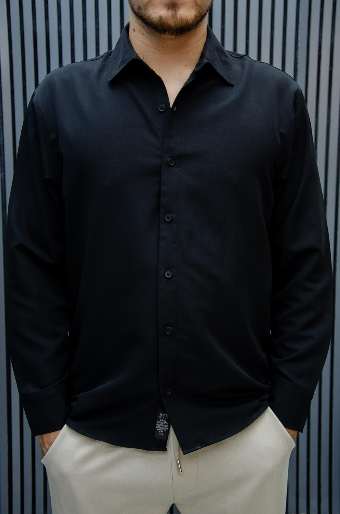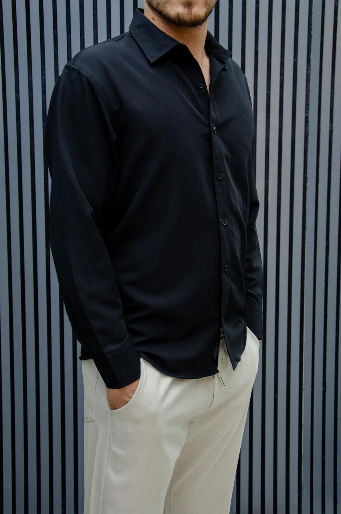 Erkek Yazlık Tiril Tiril Aktüs Oversize Gömlek - Siyah